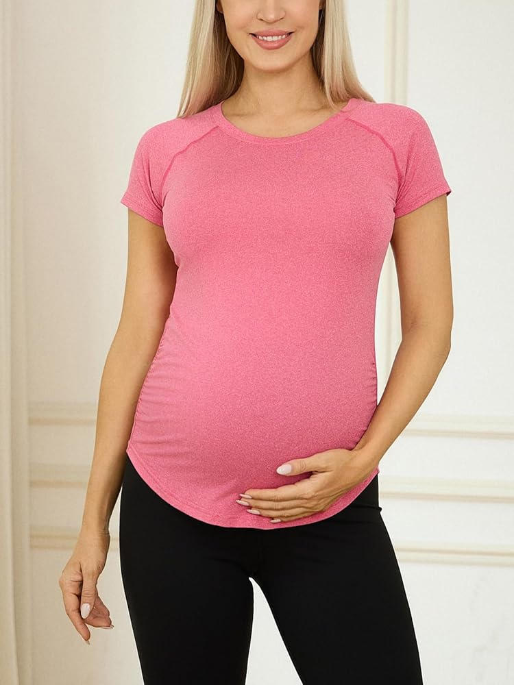 【نسيج مسامي】يُصنع هذا القميص المخصص للتمرين الخاص بالأمومة من نسيج ناعم وخفيف الوزن ومميز ماص للرطوبة، مما يبقيك منتعشًا ومرتاحًا، وهو مثالي للأم النشيطة التي ترغب في الحفاظ على لياقتها أثناء الحمل.