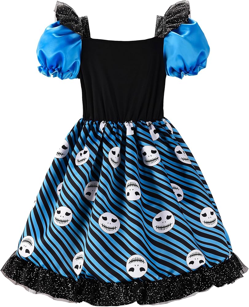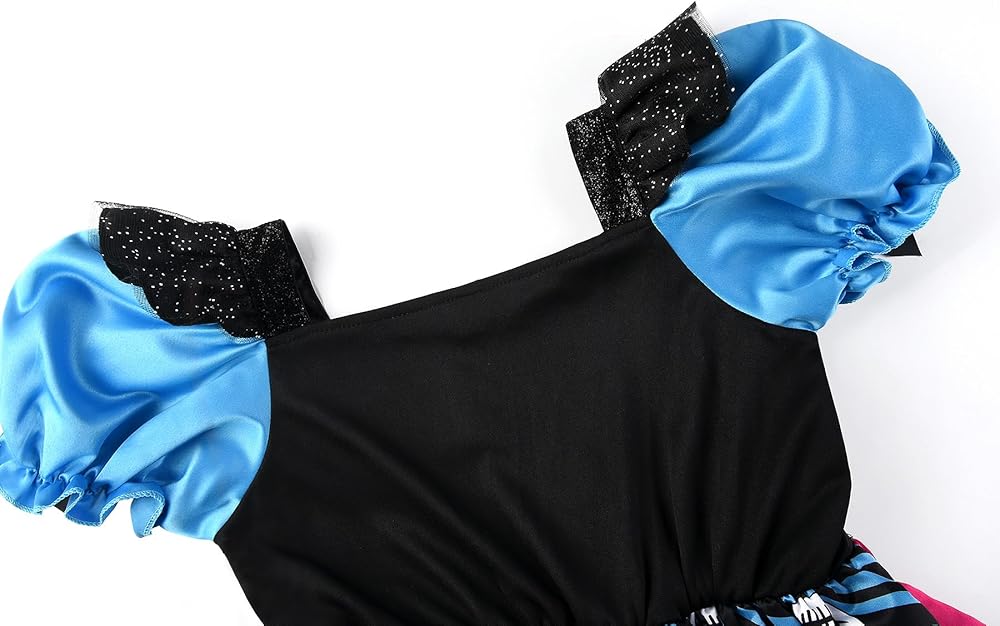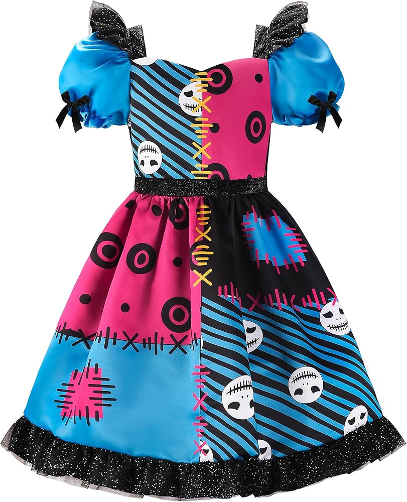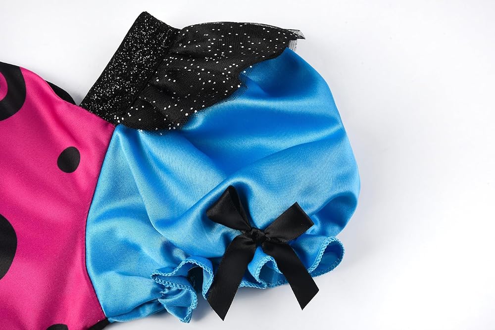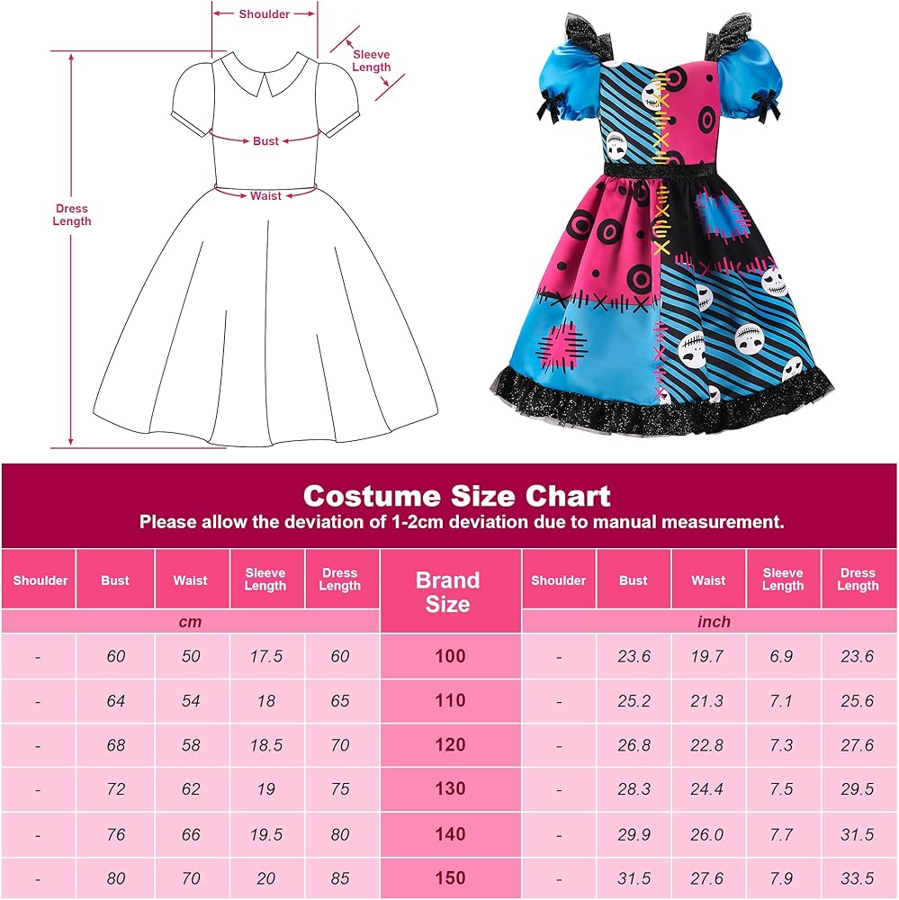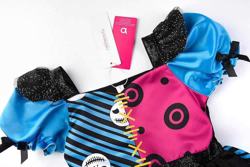 • 【التصميم】: الفستان العام باللون الأزرق والأحمر الوردي، مع ألوان متباينة، ويوجد فتحات وطبعات جمجمة