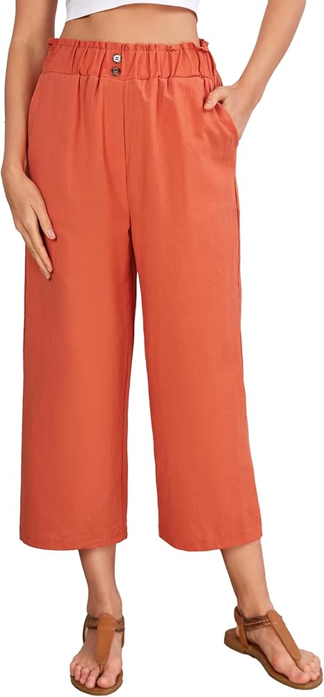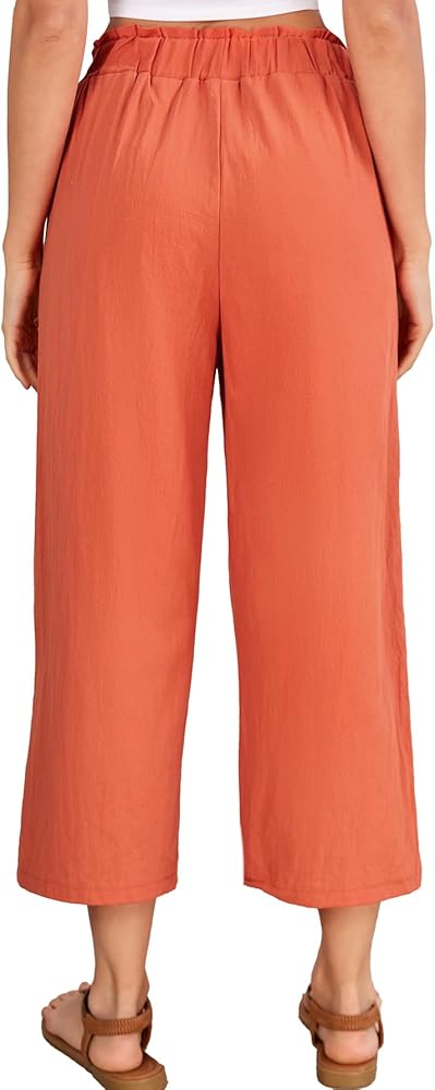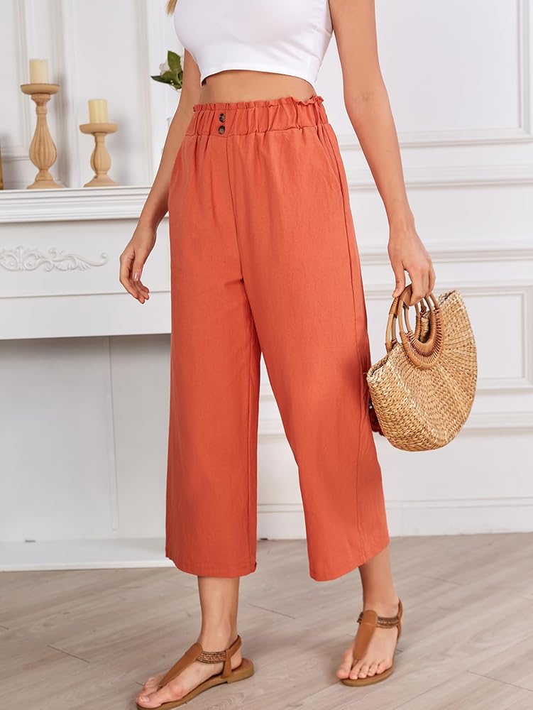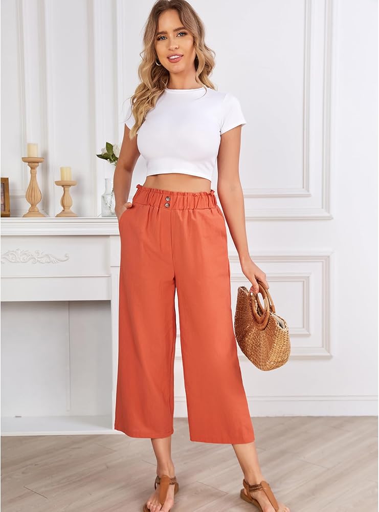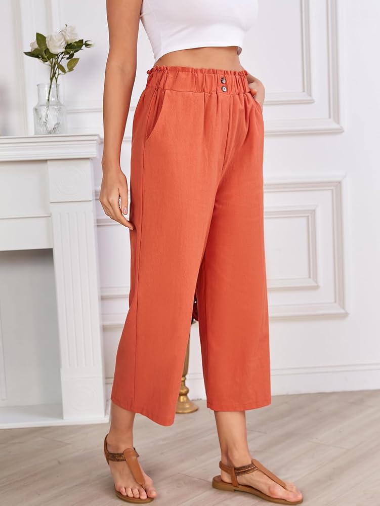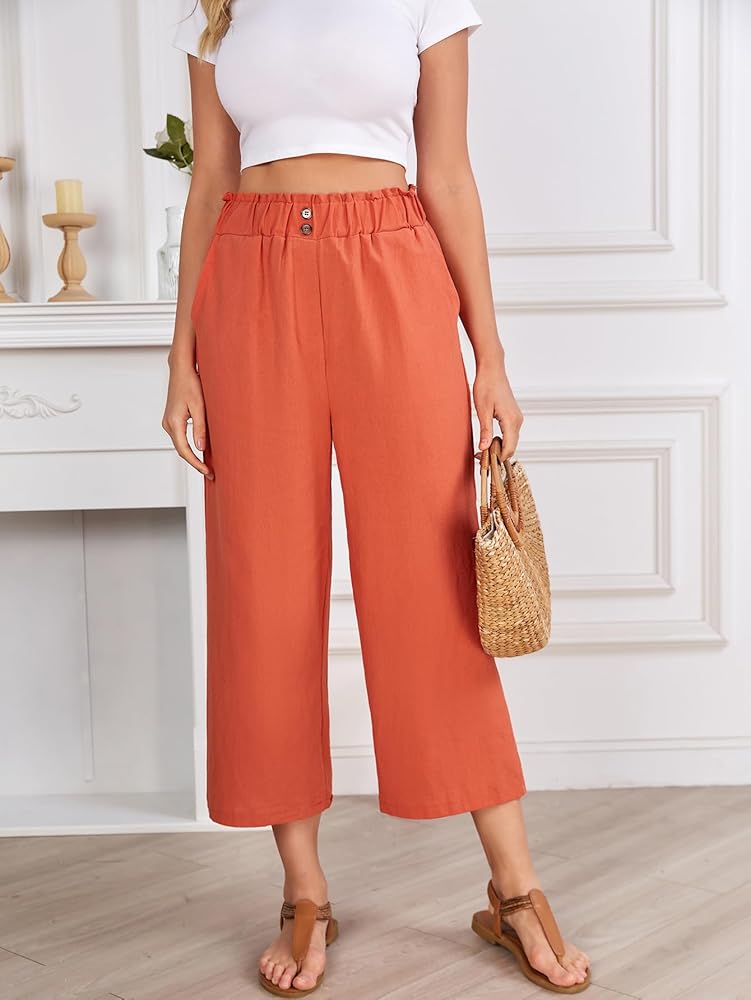 • This linen pants for women and girls features solid color, high waist, straight leg, loose, flowy hem, ankle-length, wide leg pants, front side pockets, button front, easy pull-on elastic waistband. Lightweight and flowy pants suitable for most different body types.