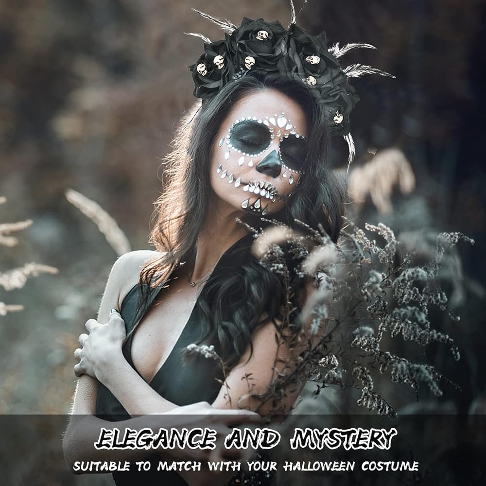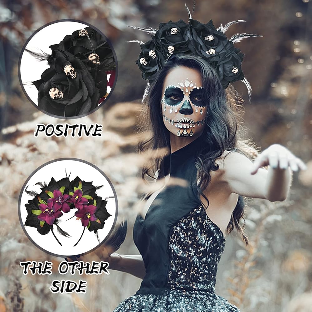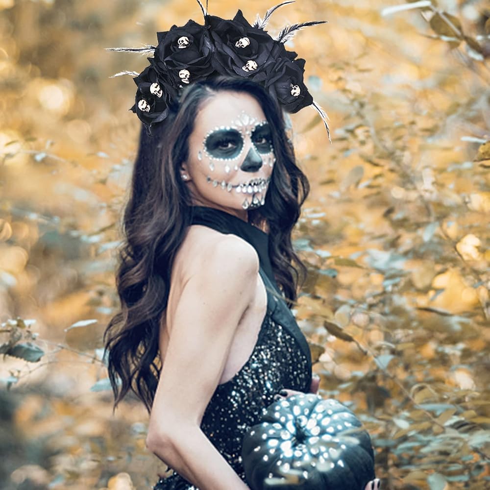 عصابة رأس Vividsun المكسيكية على شكل زهرة الورد يوم الموتى، عصابة رأس لحفلات الهالوين