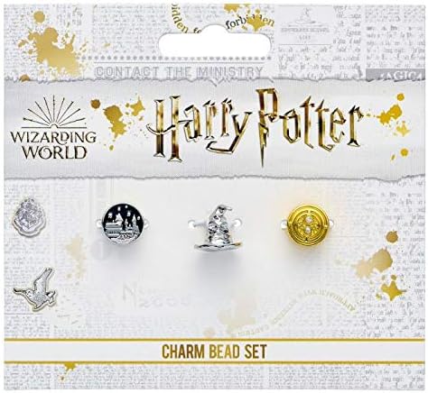 هاري بوتر مجموعة خرز فواصل رسمية مكونة من 3 قطع - قلعة هوجورتس وقبعة فرز وتقليب الوقت، مقاس واحد، معدن غير ثمين، حجر الراين, معدن, حجر الراين