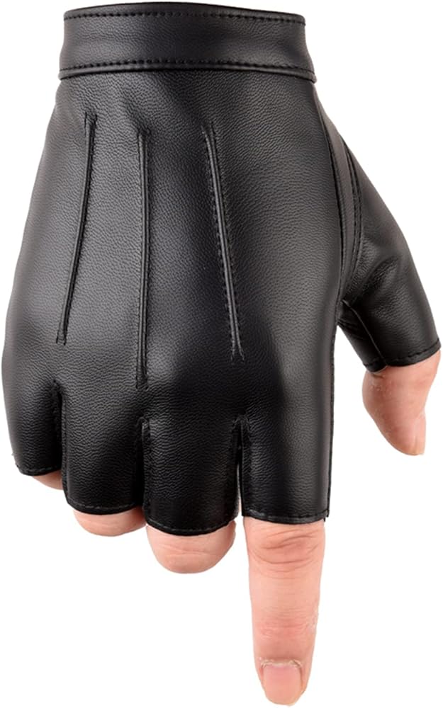 قفازات القيادة للرجال والنساء والمراهقين من جلد البولي يوريثان بدون أصابع، قفاز أسود نصف إصبع للرياضة في الهواء الطلق