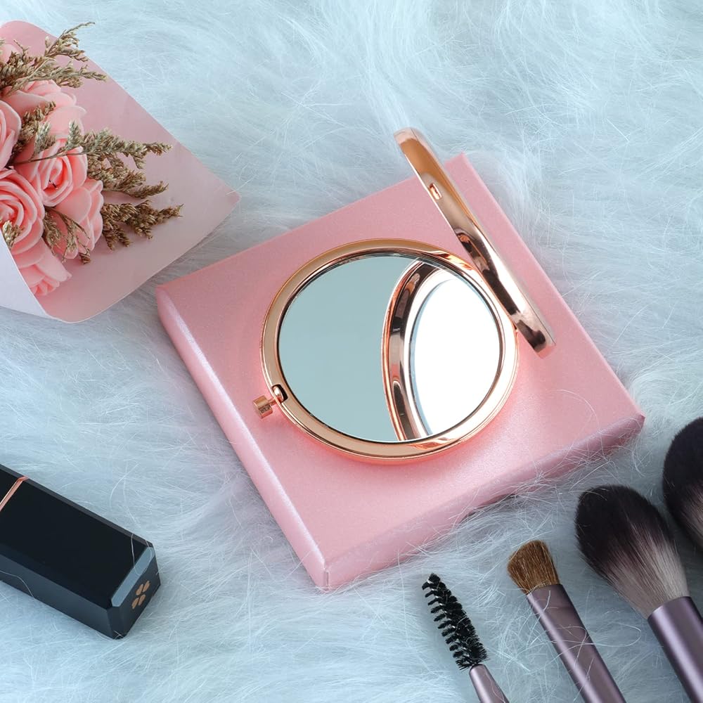 • 4.【Potable Hand Mirror】:Rose Gold Stainless Steel, is a professional quality makeup hand folding travel mirror. 2.5" diameter, 0.4" thick. It is beautifully packaged in a delicate gift box.