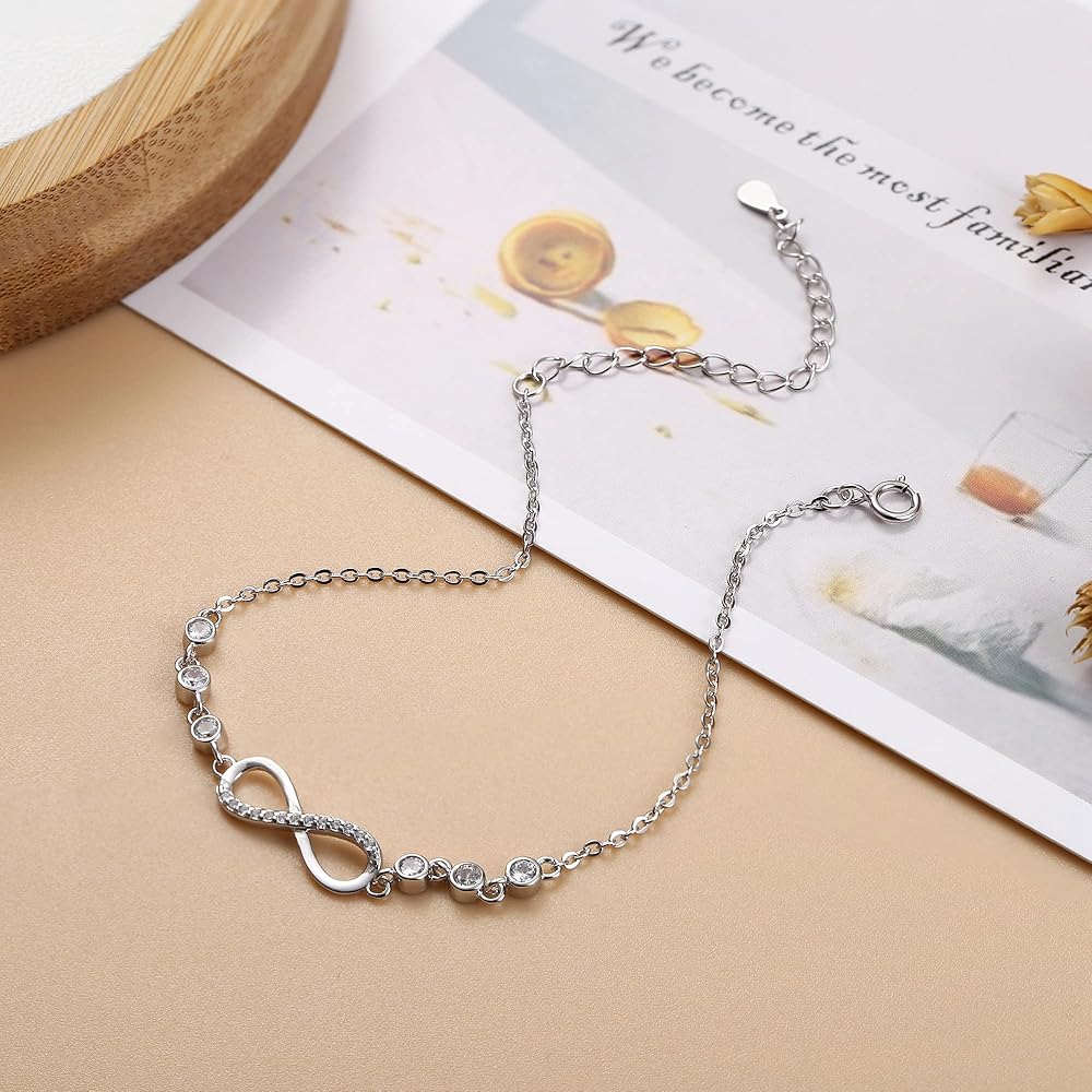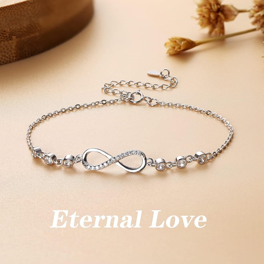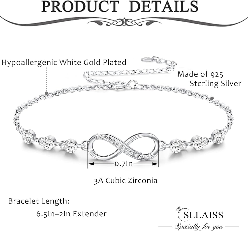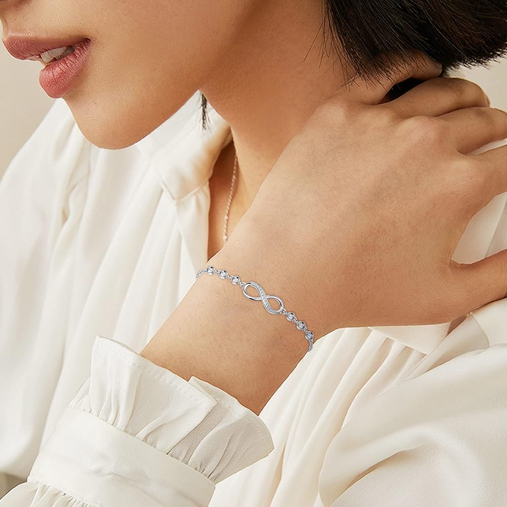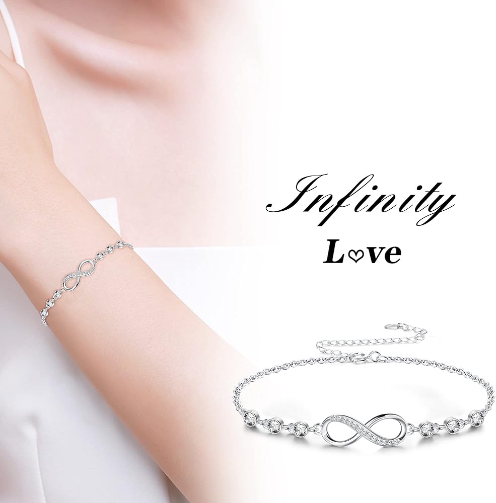 💕 الأبعاد 💕 حجم الشكل اللامتناهي--0.7/0.5 بوصة. الطول الإجمالي للسلسلة - 6+2 بوصة، سلسلة قابلة للتعديل مؤمنة بمشبك حلقة زنبركية. مناسب للحياة اليومية والمدرسة والعمل والمكتب والمواعيد والعشاء والحفلات وغيرها من المناسبات الخاصة، سوار الزركونيا الفضي الاسترليني هو إكسسوار الموضة المثالي لأي امرأة من جميع الأعمار وهذا البعد مناسب لمعظم الأشخاص