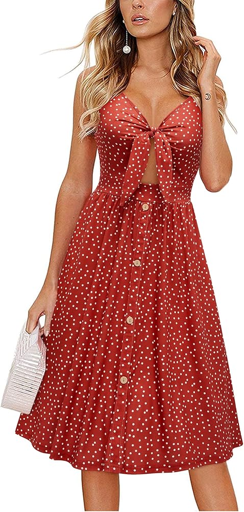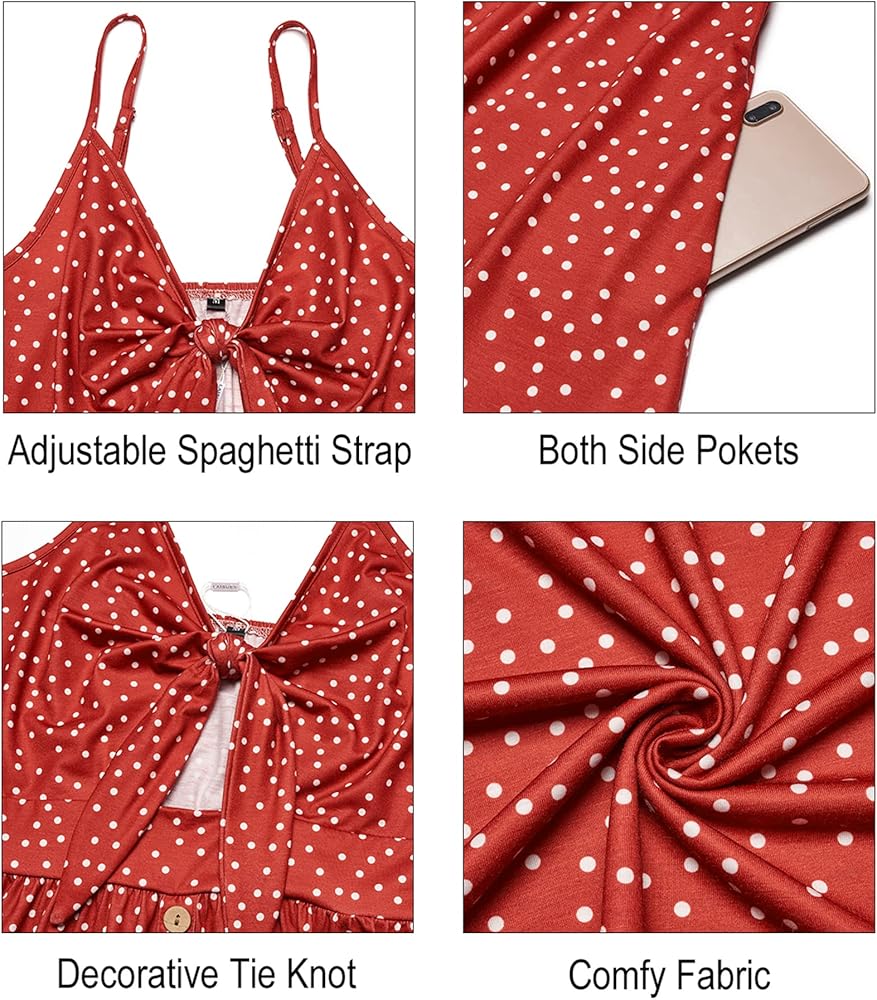 المميزات - فستان بأشرطة سباجيتي، عقدة أمامية مزخرفة، رقبة عميقة على شكل حرف V، جيوب جانبية، طباعة زهور، نمط على شكل حرف A، طول الركبة، حاشية متموجة، فستان متوسط الطول متأرجح. فستان الشمس هذا يجعلك أكثر جاذبية وجاذبية