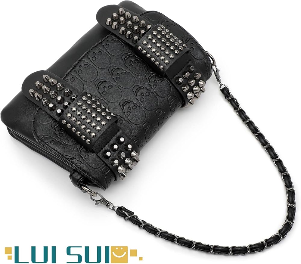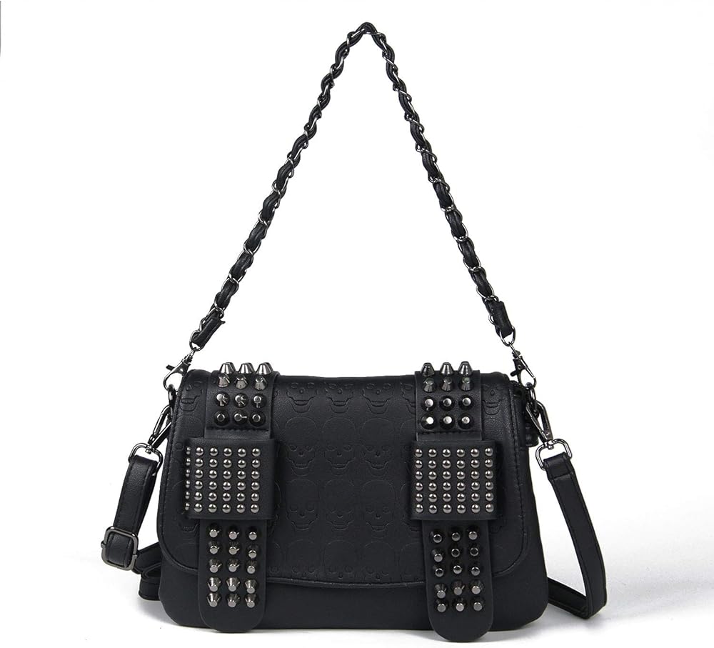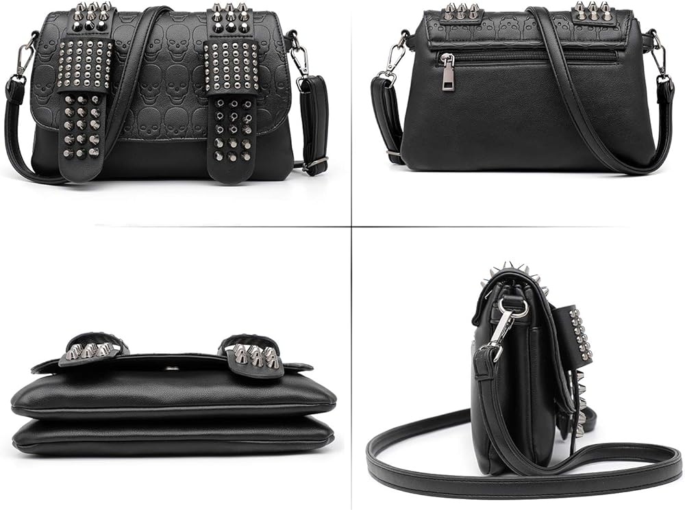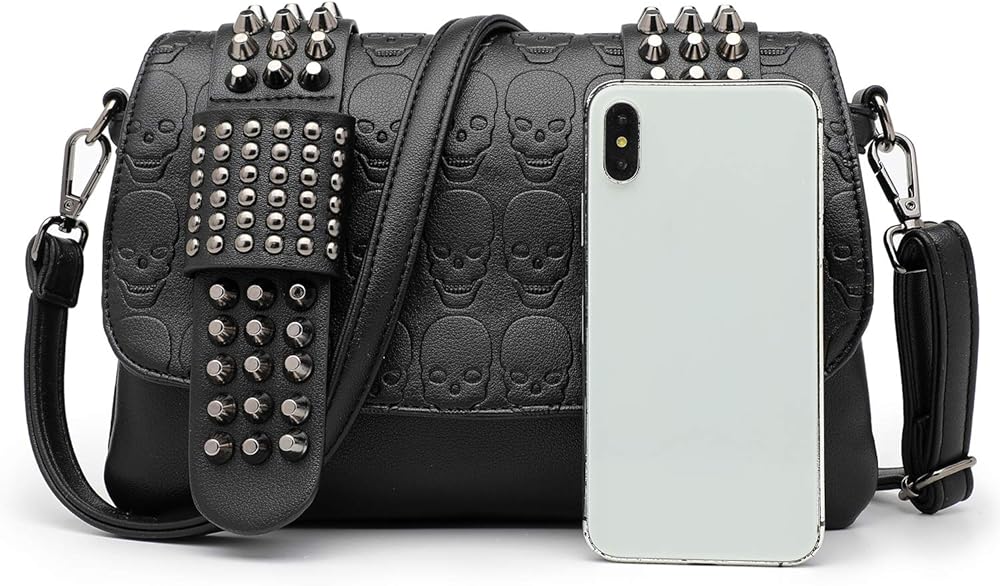 المواد والميزات: حقائب محفظة على شكل جمجمة مصنوعة من جلد البولي يوريثان عالي الجودة. تصميم بطبعة جمجمة ومسامير مدمجة.