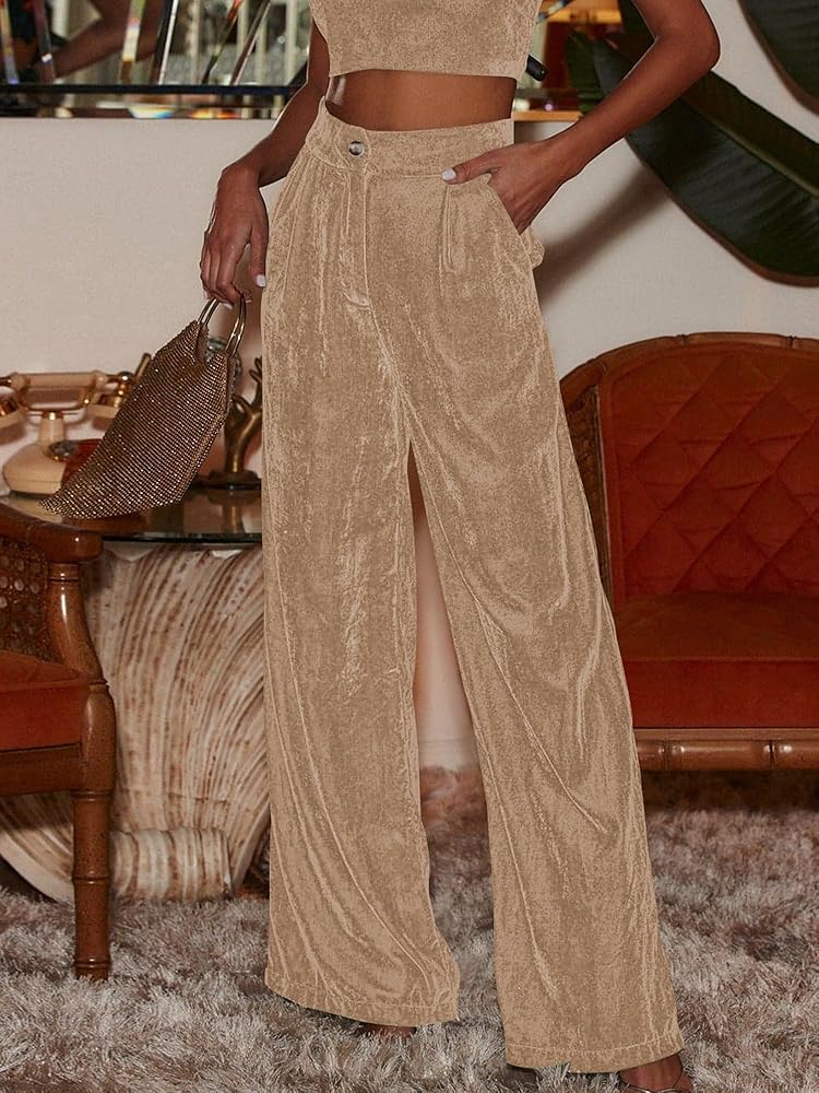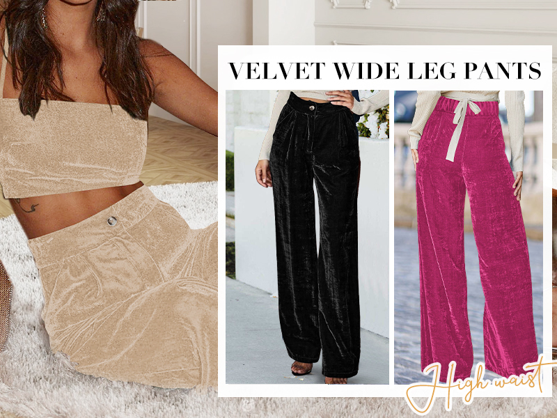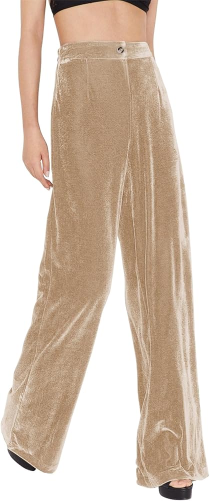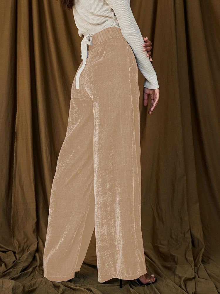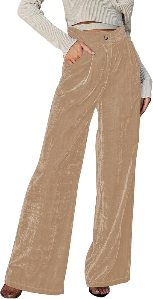 ملاءمة مثالية - تتميز سراويل كابري المخملية ذات الساق العريضة المستقيمة بلون سادة وخصر مرتفع وخصر مطوي وحزام خصر سميك مرن وتصميم كامل الطول، والنسيج يتميز ببعض التصميم القابل للتمدد والهيلاكس ليناسب جميع أنواع الجسم