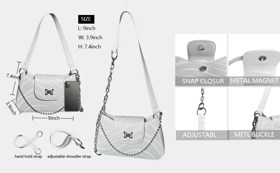 • المناسبات: تصميم كلاسيكي، نمط أنيق، شعار فراشة على الجزء الأمامي من الحقيبة، مع حزام كتف طويل قابل للفصل وحقيبة تخزين مجوهرات فريدة، يمكن استخدامها في المواعدة والتسوق والعمل والسفر. سواء كانت الكريسماس أو عيد الحب أو أيام الأسبوع، فهي هدية مثالية لصديقتك الحبيبة أو زوجتك أو والدتك.