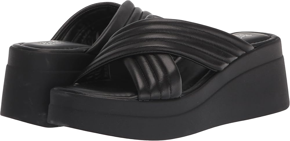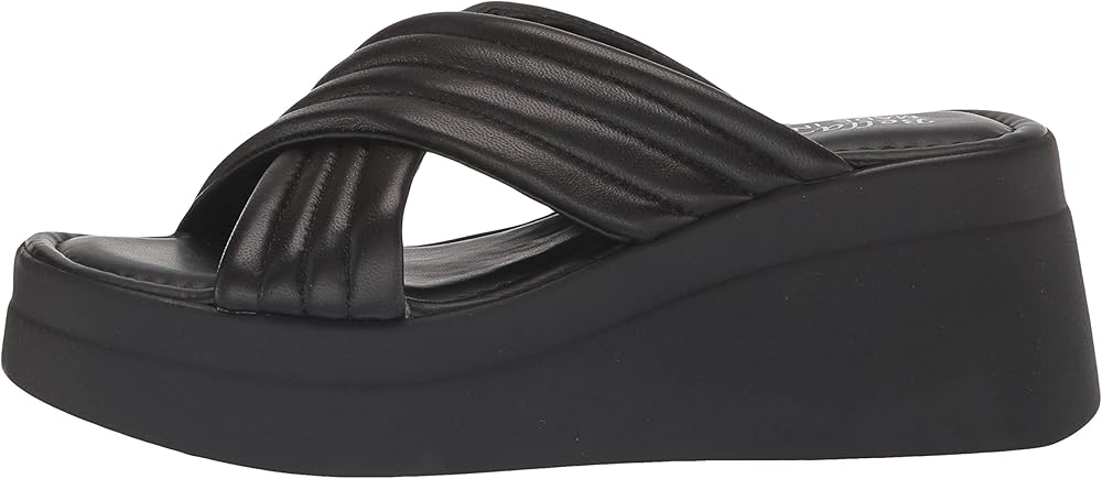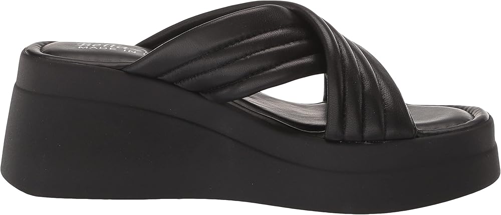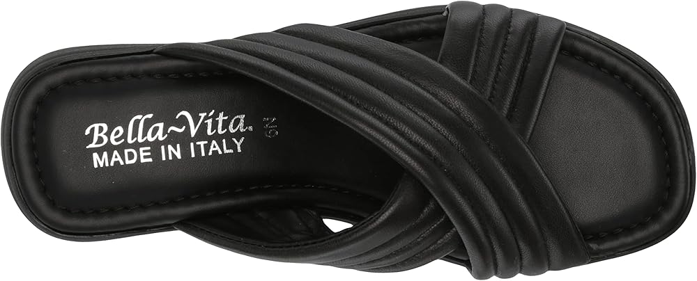Simplistic and comfortable, slide on the Maz-Italy by Bella Vita be met Italian finesse. The leather criss cross two banded puffy upper is so soft and so on trend. The contemporary platform wedge is designed with your comfort in mind and the padded insole will help make sure this sandal meets all your summer needs.