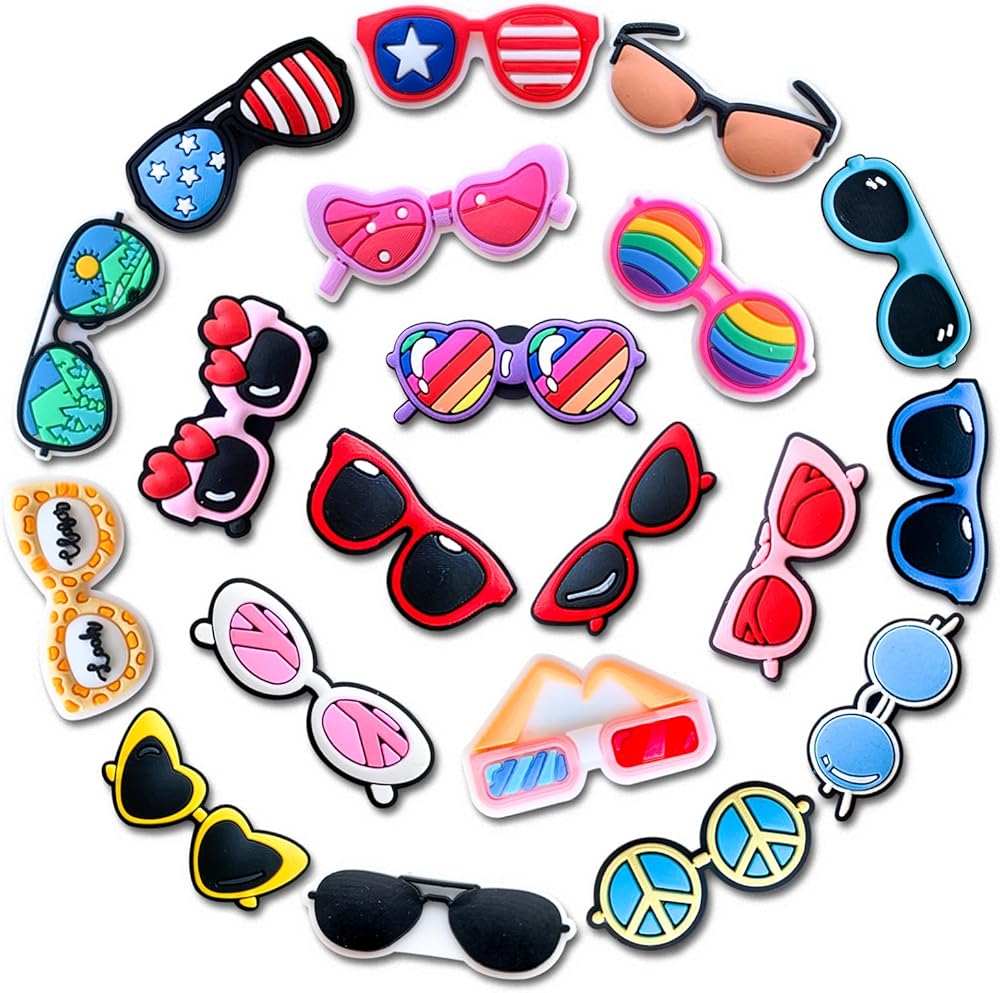 سهلة التنسيق: تحتوي كل مجموعة على 20 قطعة من تعليقات النظارات الشمسية المختلفة، يمكنك مطابقة أنماط مختلفة من إكسسوارات الأحذية وفقًا لملابسك.
