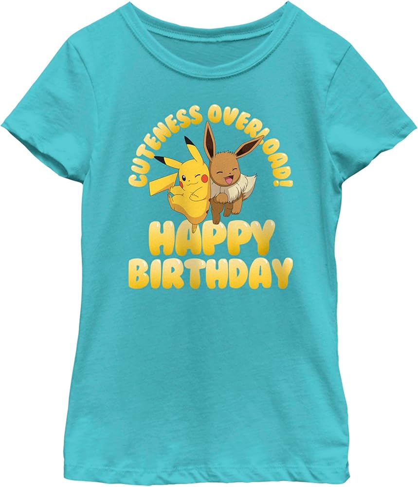Pokemon Girls Cuteness Overload Short Sleeve Tee Shirt, Tahiti Blue, Medium
