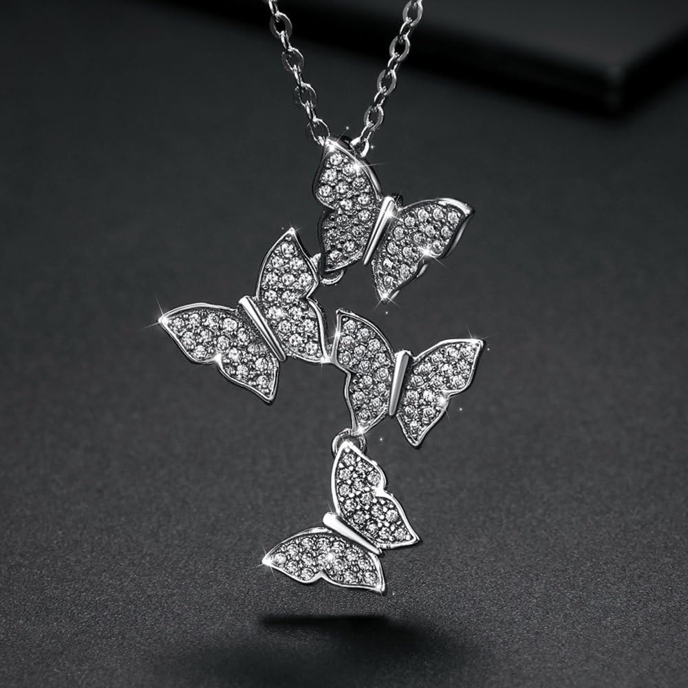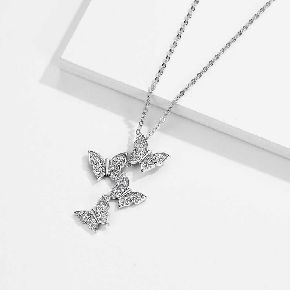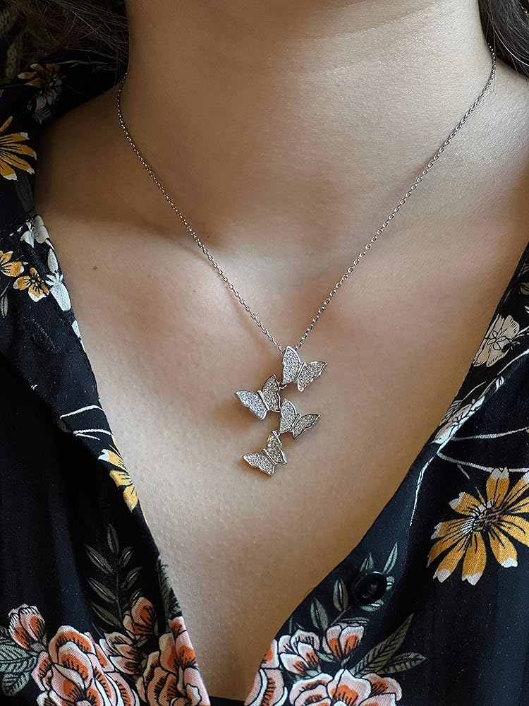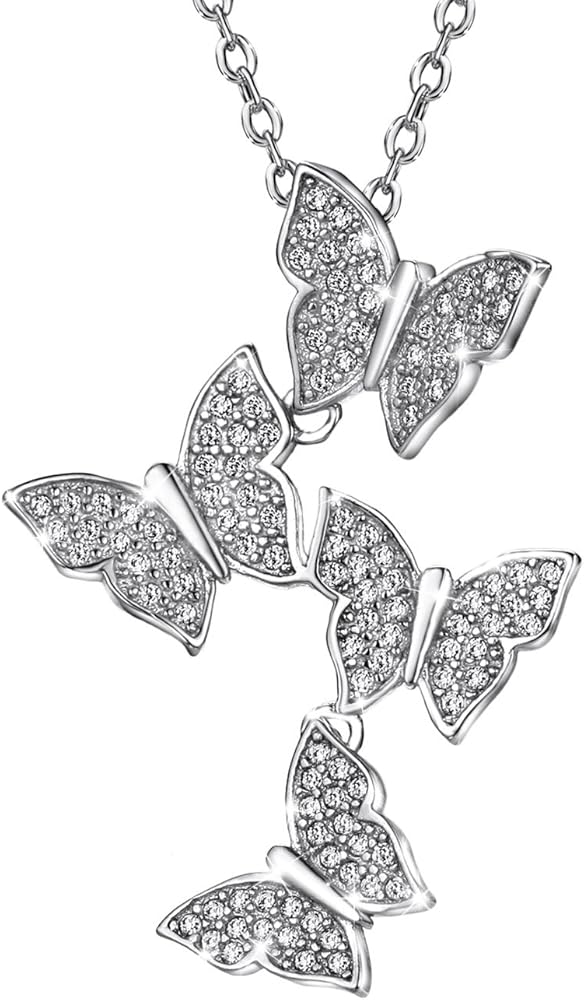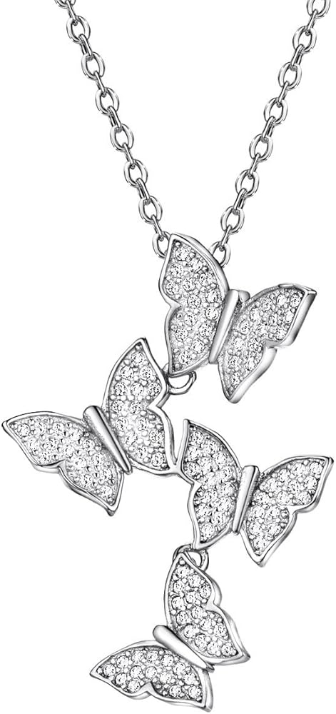 These simple cubic zirconia pave setting shinny butterfly pendant necklace crafted in rhodium plated sterling silver, AAAAA+ cubic zirconia. timeless classical in beauty boost any casual or elegant formal attire.