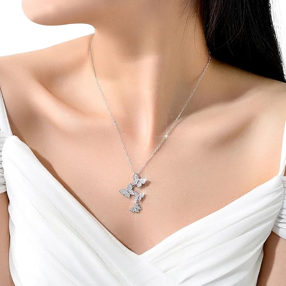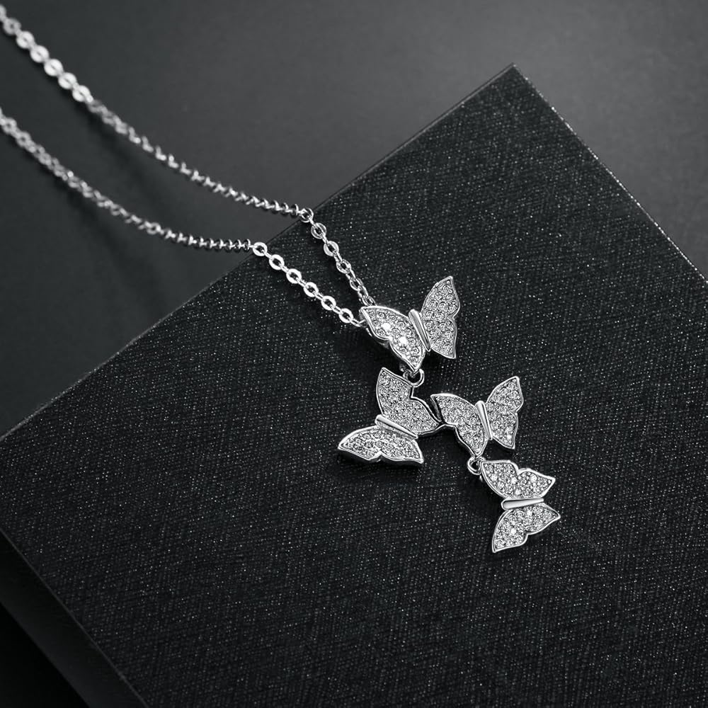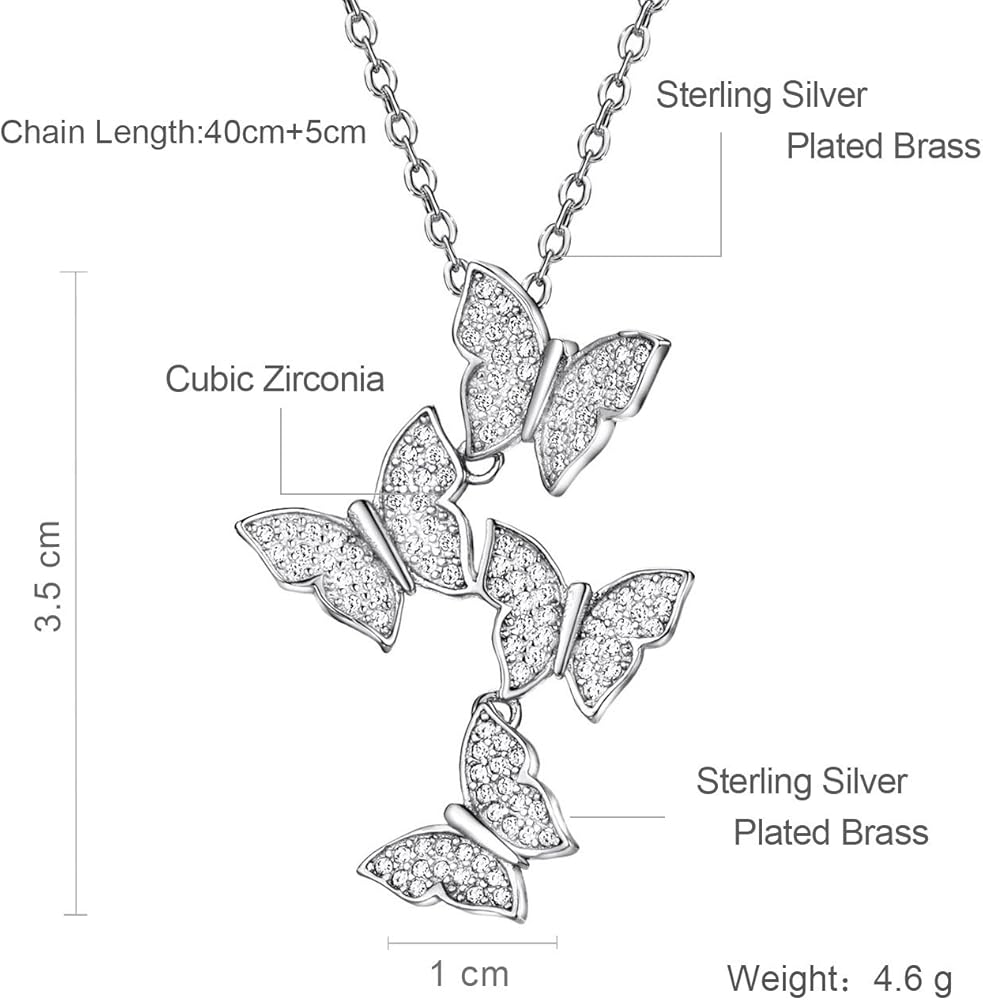 These simple cubic zirconia pave setting shinny butterfly pendant necklace crafted in rhodium plated sterling silver, AAAAA+ cubic zirconia. timeless classical in beauty boost any casual or elegant formal attire.