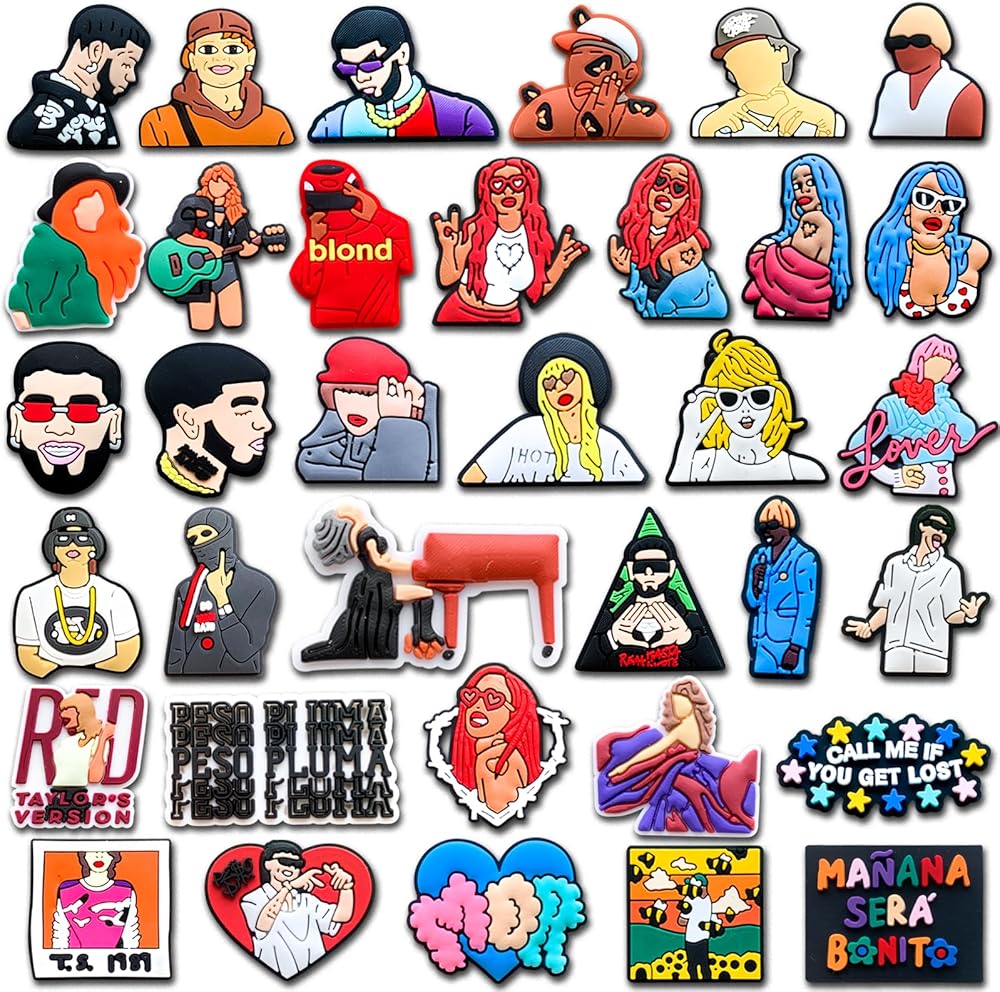 35PCS Singer Shoe Decoration Charms for Croc Clog Sandals, Fashion Music Singer Shoe Accessories Charms for Adult Teen Party Gifts, Non-Precious Metal, No Gemstone