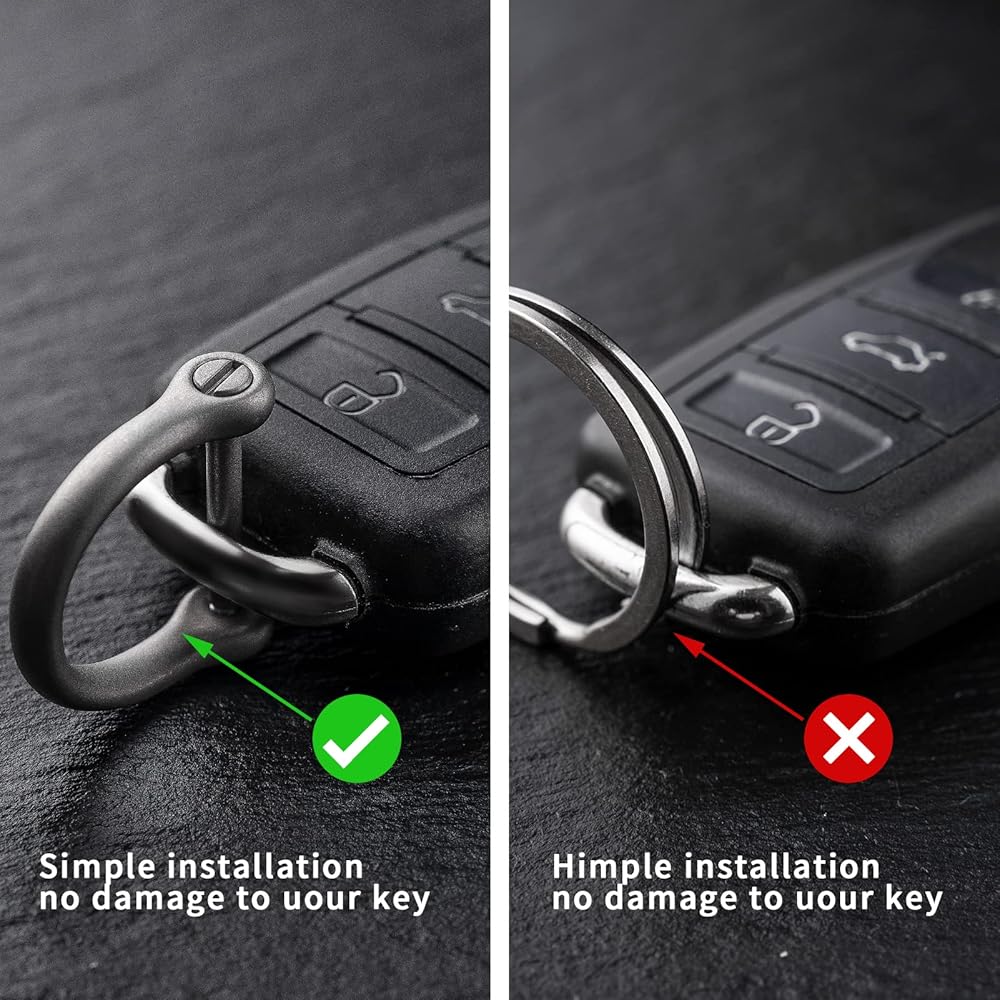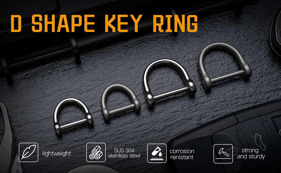 حلقات على شكل حرف D لمفتاح السيارة: مصممة خصيصًا لمفاتيح السيارة، ومفتاح السيارة. يمكن أن تحل بشكل فعال مشاكل المفاتيح العريضة والسميكة، والقلم، وأدوات edc. تصميم لولبي في اتجاه واحد، مع غسالة مطاطية ناعمة، أكثر إحكاما، لا تفقد مفاتيحك مرة أخرى.