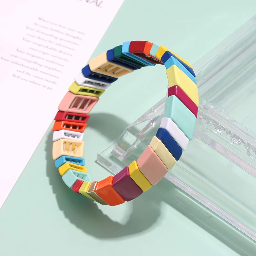 Our colorful enamel tile bracelet willbecome the fashion trend-setting style in the future.