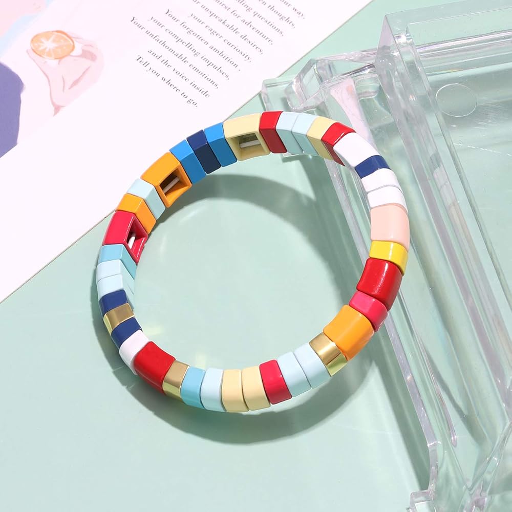 • Wide Apply- They are bright colorful beaded strand bracelet for casual wear, you can wear them in any occasion such as casual life, formal dress, party, evening, the elastic rope link bracelet supported to wear it on or off easily. These tile enamel bracelet will become a ideal jewelry in the future such as Christmas Day, back to school, party, birthday, evening, appointment, Thanksgiving Day,Mother's Day...