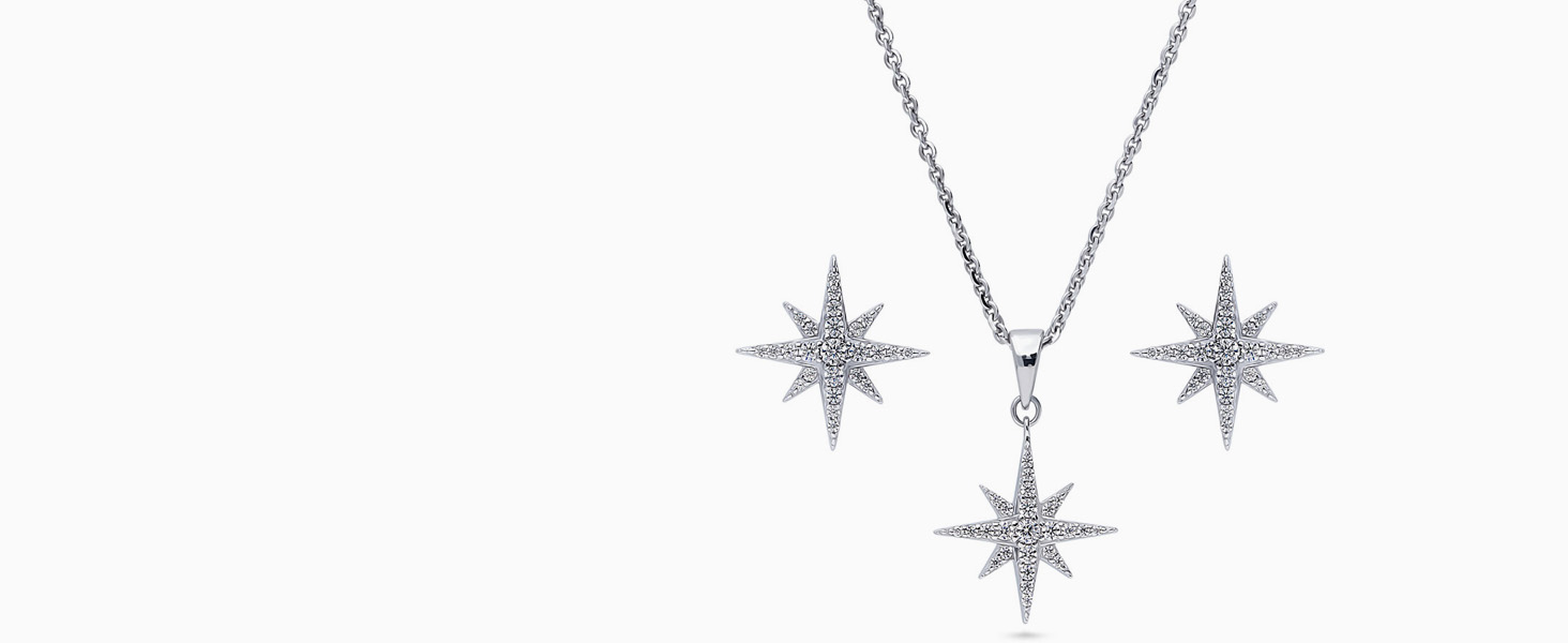 • 【METAL】 This north star star earrings and pendant necklace set is crafted with fine real solid sterling silver, stamped 925, plated with rhodium to enhance shine and durability.
