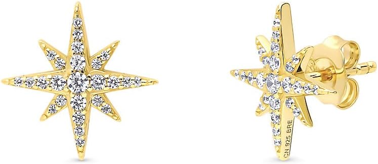 This north star earrings and necklace set twinkles like a real star in the night sky, symbolizing guidance, direction, and inspiration. It will make a great addition to any collection. Crafted with fine 925 sterling silver, rhodium plated, nickel free. (EARRINGS) Set with 0.42 ct.tw round cubic zirconia CZ in crown and prong setting. Earring measures 0.59"(L), 0.59"(W). Center posts with butterfly backs. (NECKLACE) Set with 0.21 ct.tw round cubic zirconia CZ in crown and prong setting. Chain measures 18" in length, 1mm in width. Lobster claw clasp. Pendant measures 0.91"(L), 0.59"(W). Imported.