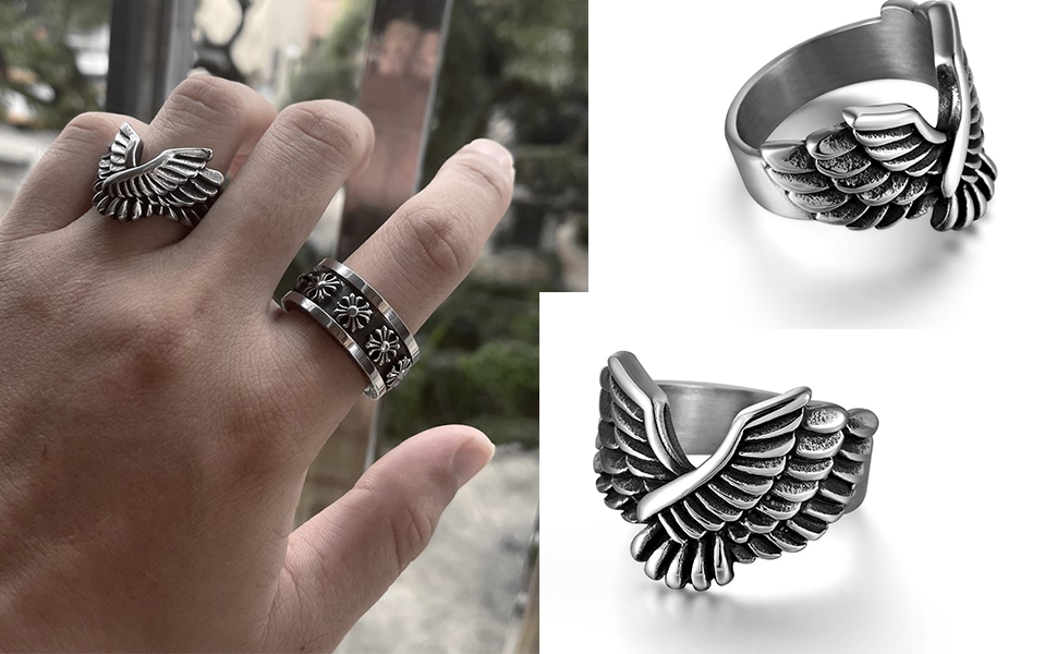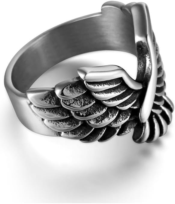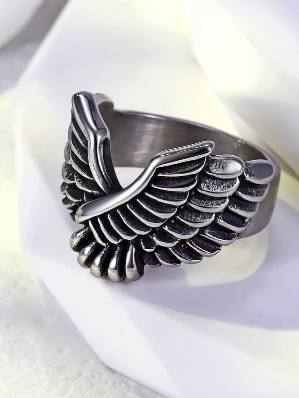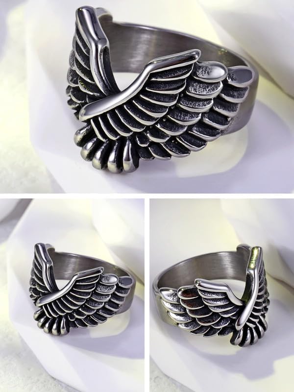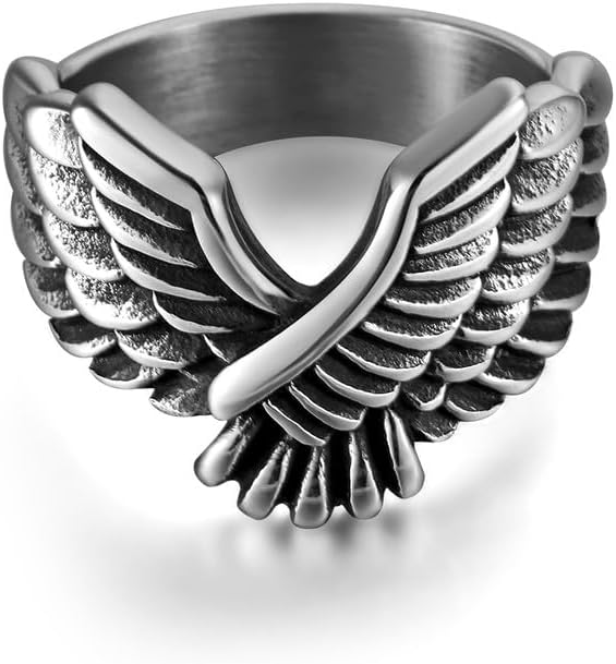 • خاتم راكبي الدراجات النارية بأجنحة النسر من الفولاذ المقاوم للصدأ: جناح حيوان أنيق من المجوهرات المصنوعة من الفولاذ المقاوم للصدأ، يمكن ارتداؤه كخاتم زفاف أو خاتم إبهام أو أي إصبع. متينة ومريحة. خاتم ذو مظهر جيد. ما تراه هو ما تحصل عليه!