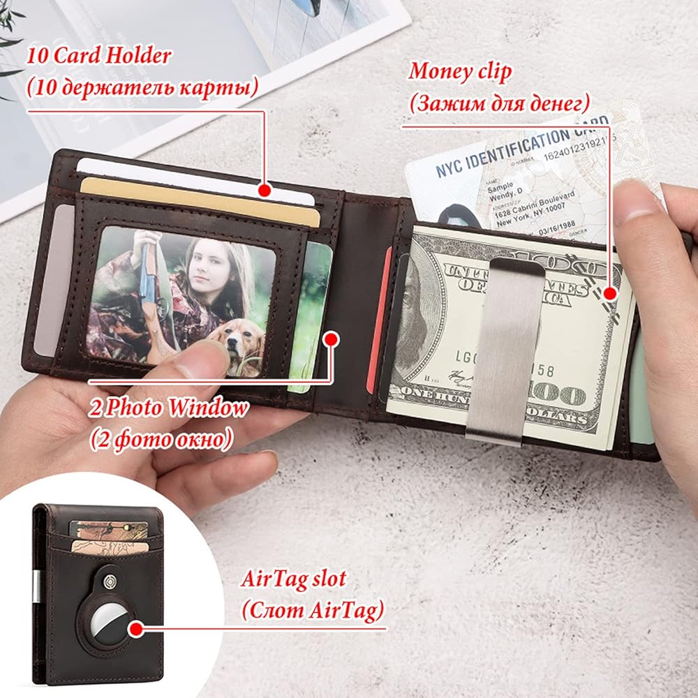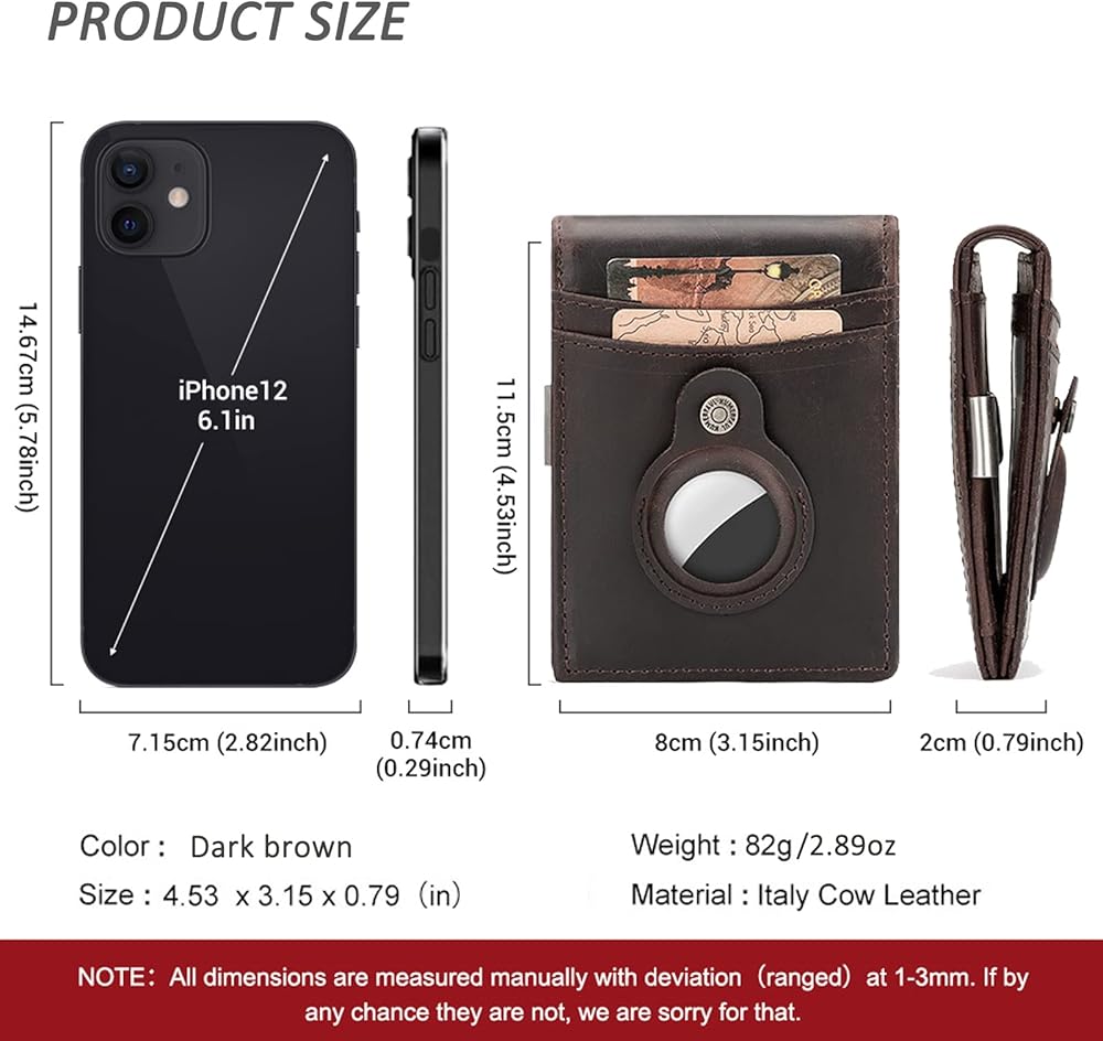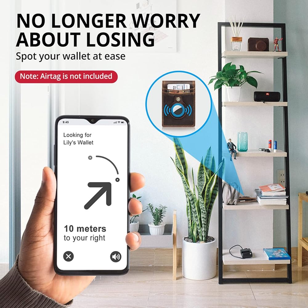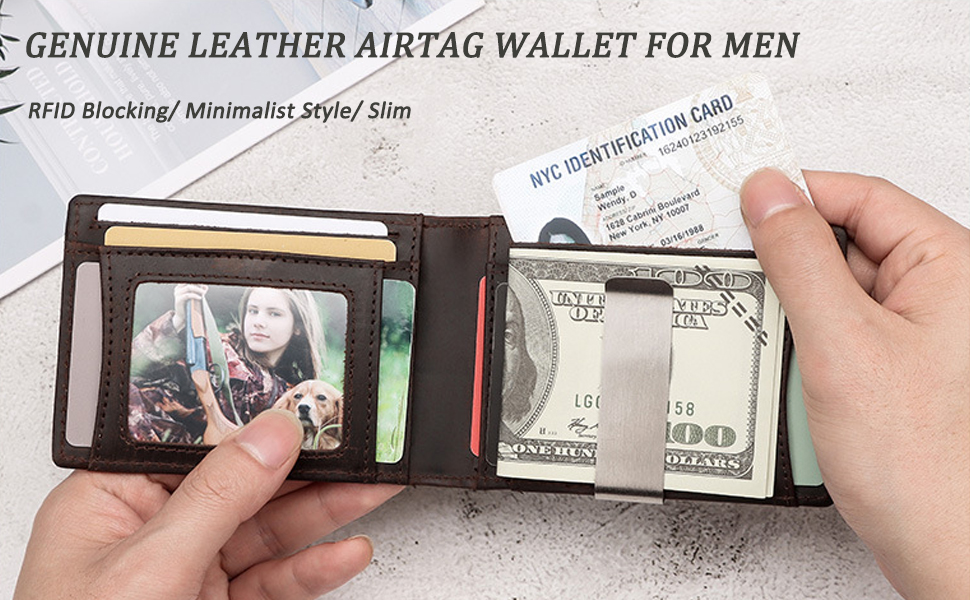 حافظة مدمجة لـ AIRTAG: تحتوي محفظة Air Tag على حامل متكامل مصمم لـ AirTag. ضع AirTag الخاص بك في علبة الحامل المدمجة، ثم يمكنك تتبع محفظتك عبر Find My APP ولن تفقد محفظتك مرة أخرى أبدًا! (بطاقة الهواء غير مدرجة)