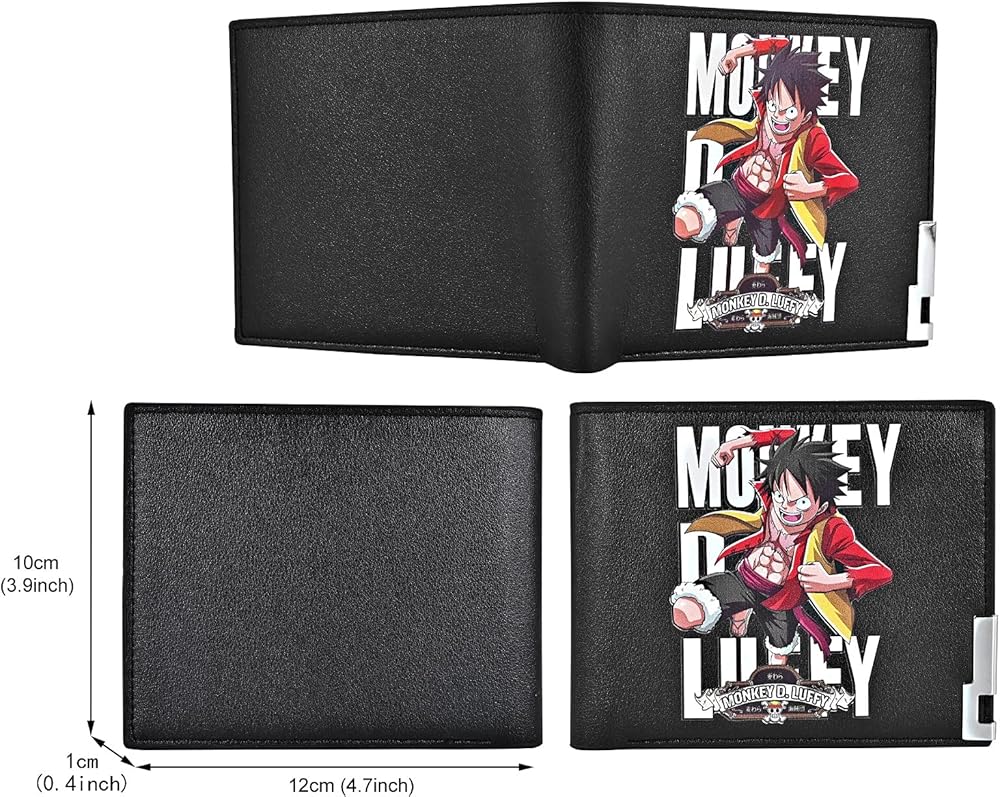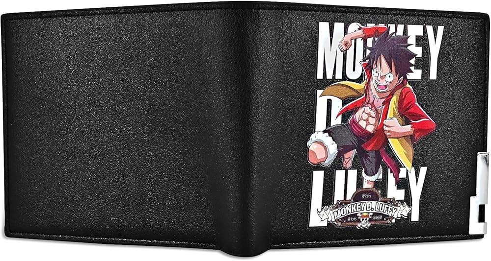 - التصميم: تستخدم المحفظة مونكي دي لوفي كغطاء، إنها هدية مثالية لعشاق الرسوم المتحركة ون بيس.