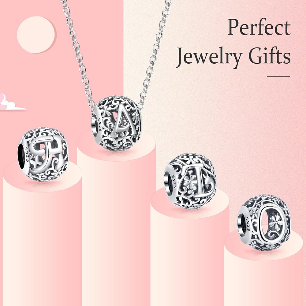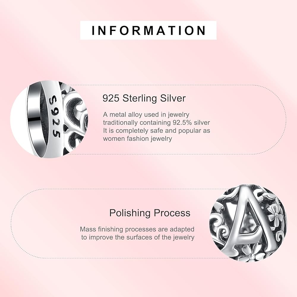 حلية حرف إيزي توكسيدو الأولية من A-Z تعويذة كلمة أبجدية الخرزة لأساور باندورا تناسب سلسلة الأفعى الأوروبية S925 فضة مجوهرات هدايا للنساء الفتيات عيد الميلاد التخرج