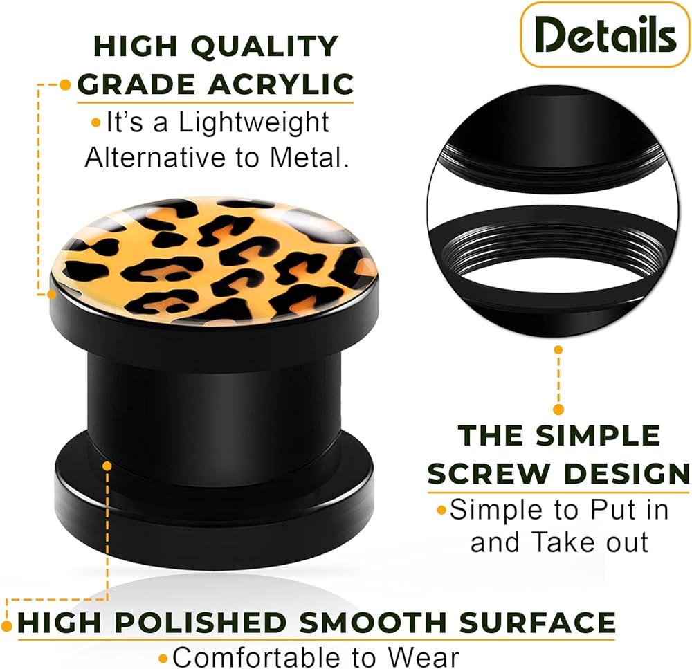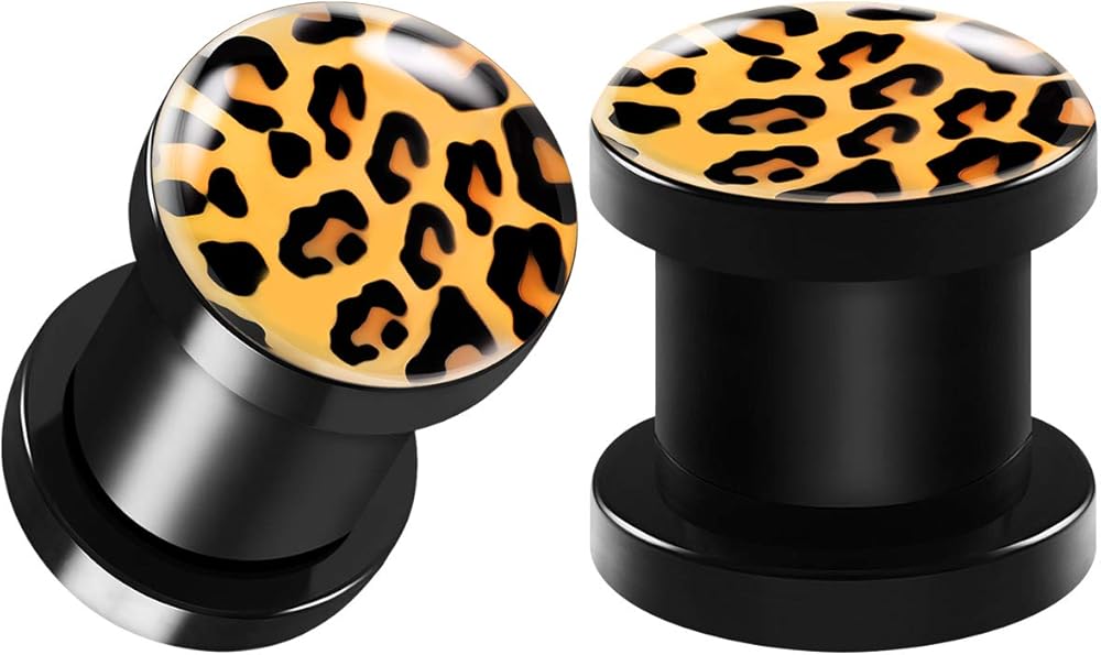 مقاييس كبيرة زوج من الأكريليك الأسود مزدوج متوهج السرج ثقب نقالة ليوبارد شعار الأذن المقابس القرط الفص المسمار نفق