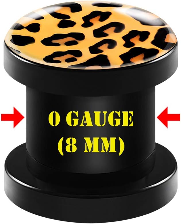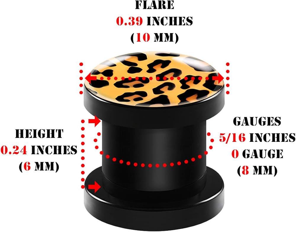 • YOU RECEIVE - A pair of Zero Gauge 8mm Black Acrylic Double Flare Gauges (screw Flesh Tunnel leopard fur logo) .