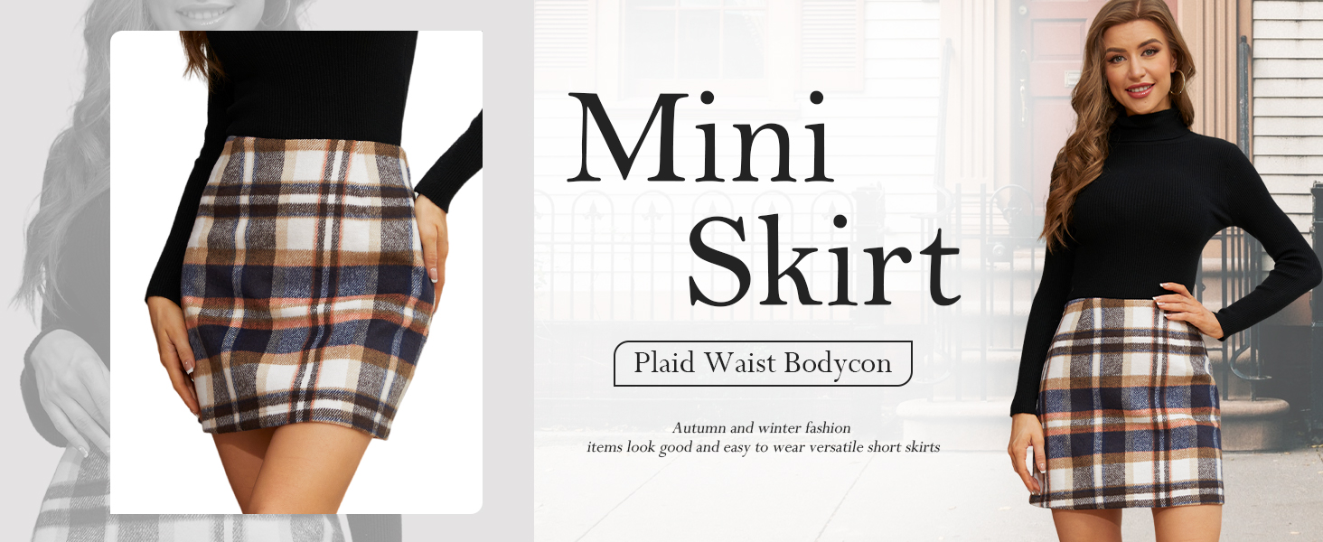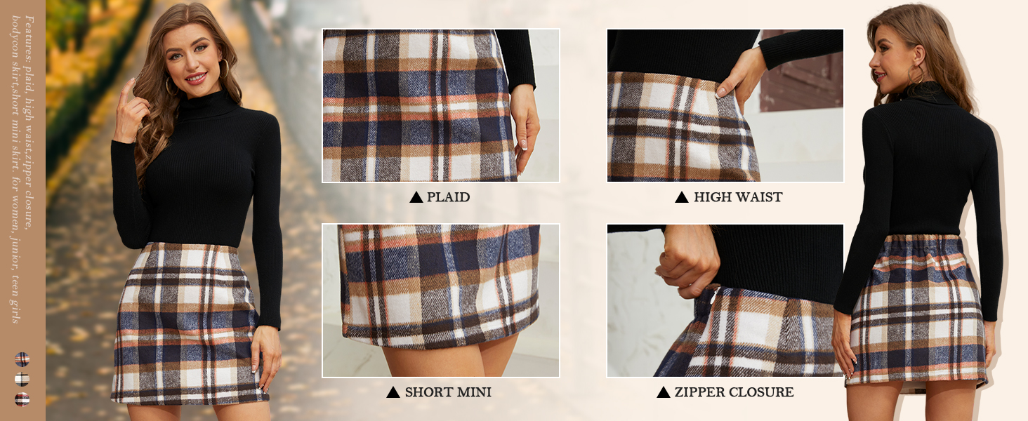 - Plaid skirt style:Casual slim fit bodycon flannel plaid mini skirts for lady.Fabric has some stretch,and it's soft and comfortable