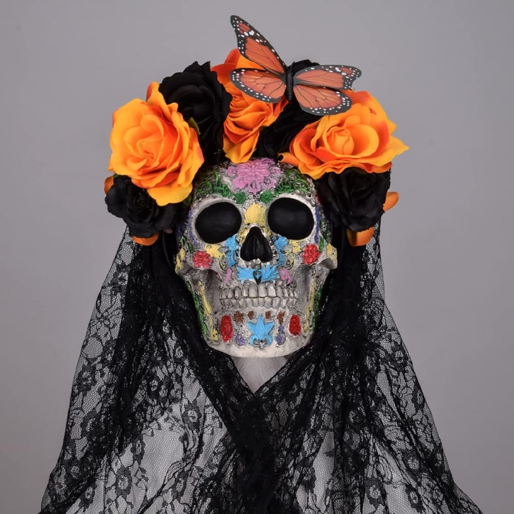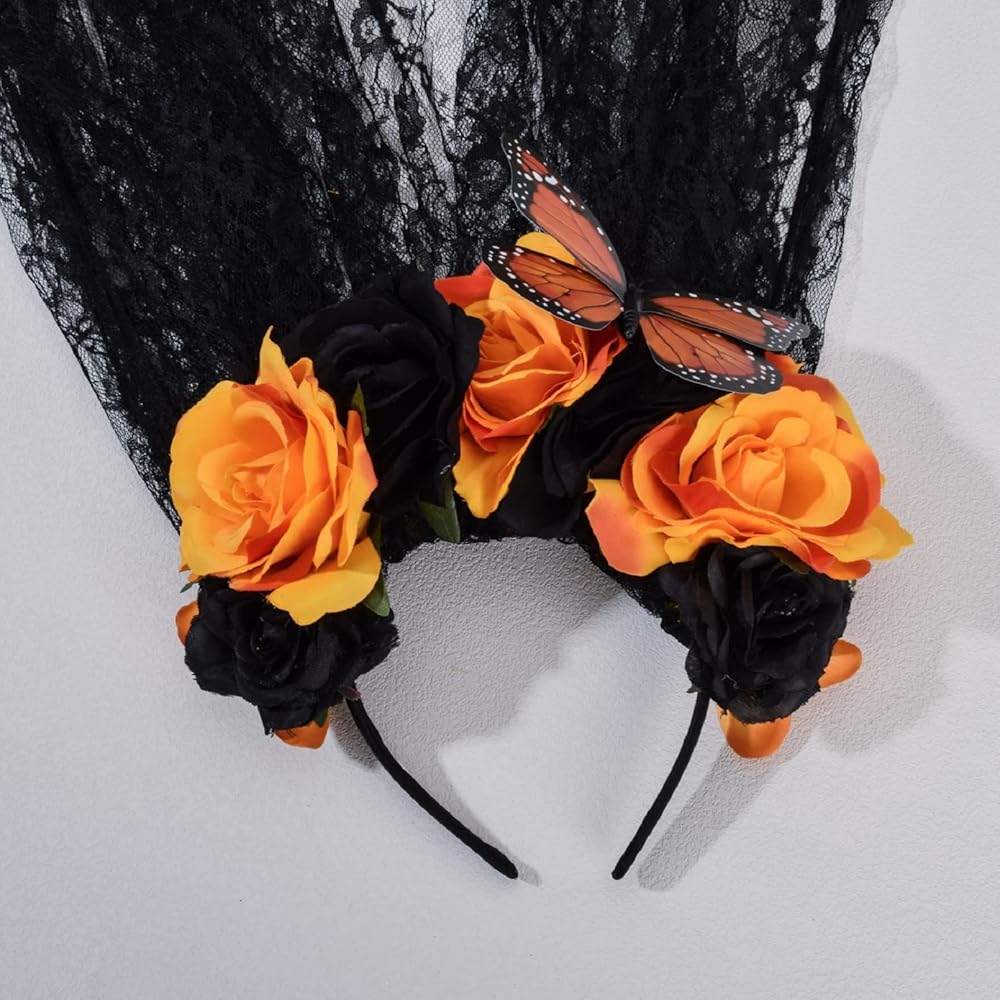 Vividsun المكسيكي زهرة الورد تاج يوم الموتى زهرة عقال الفراشات زهرة تاج زي خوذة