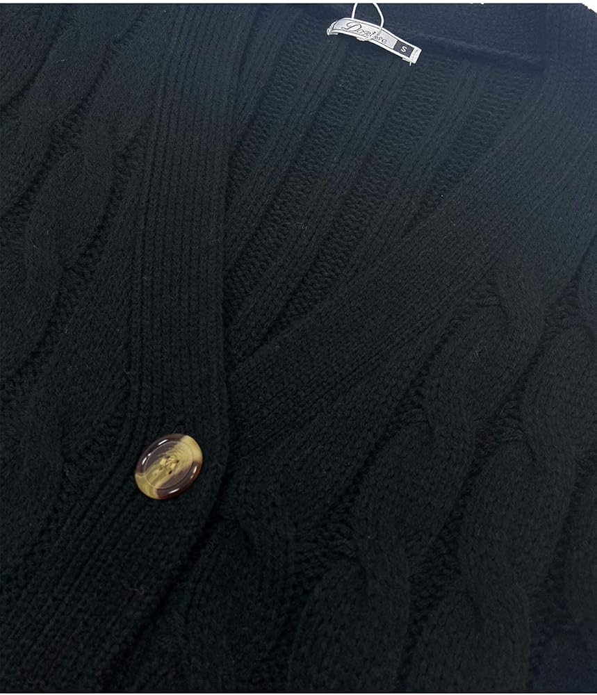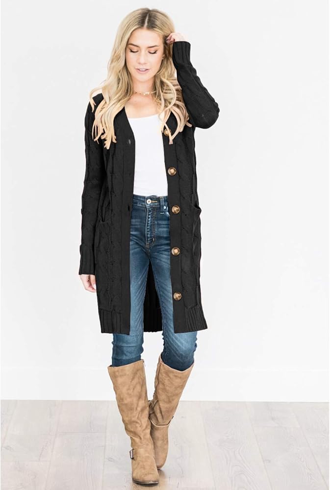 - المزايا: كم طويل، تفاصيل محبوكة بالكابل، لون موحد، أزرار سفلية، جيبان على الجانب، طول الركبة، مقاس فضفاض
