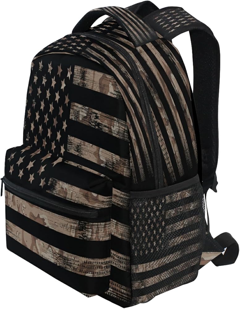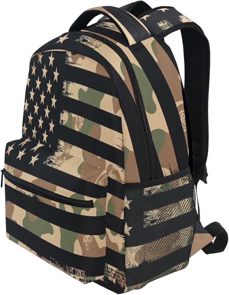 Kcldeci العلم الأمريكي التمويه حقيبة الظهر للأطفال للبنين بنات الولايات المتحدة الأمريكية العلم كامو الابتدائية المدرسية رياض الأطفال حقائب الكتب مرحلة ما قبل المدرسة حقيبة مدرسية طفل صغير حقائب السفر حقيبة