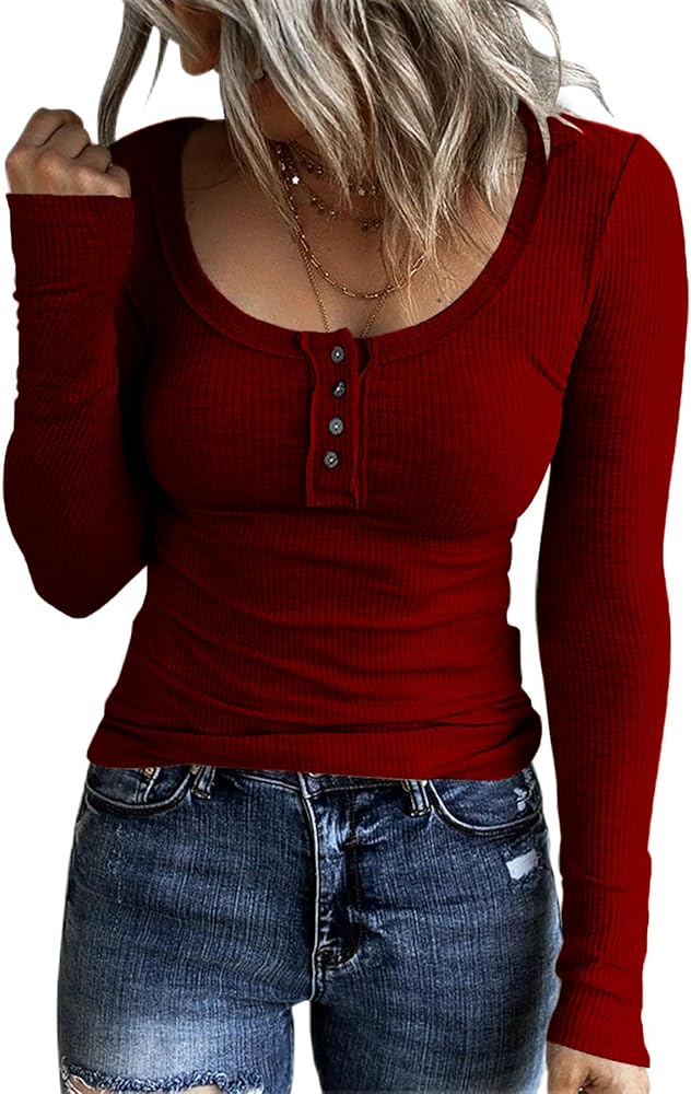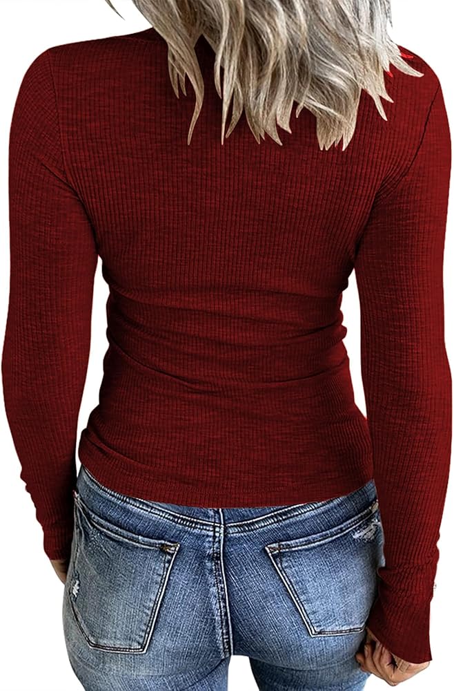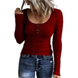 FANGJIN قمصان نسائية شتوية كاجوال بأكمام طويلة تونيك علوية برقبة واسعة تي شيرت للنساء بلوفر عصري للسيدات لون أحمر نبيذي متوسط