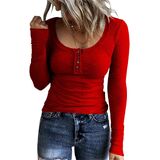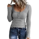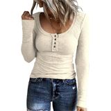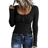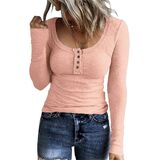 - السمات: لون موحد، مناسب، زر، رقبة هينلي، كاجوال، خفيف الوزن، قميص مضلع بأكمام طويلة للسيدات.