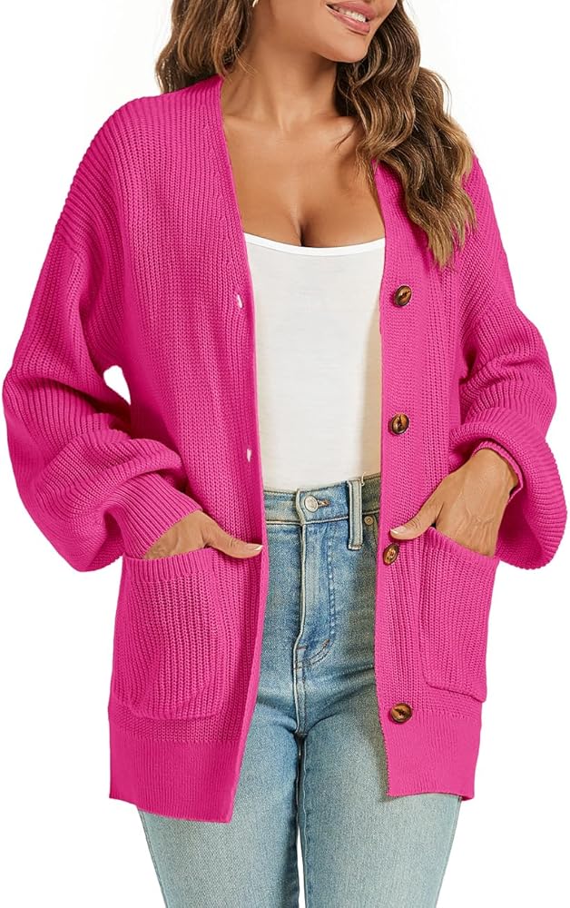 • Feature: The oversized cardigan sweater features long lantern sleeves with sides pocket, v neckline design, solid color,button placket,ribbed cuffs & hemline, oversized button down cardigan, loose and casual style.