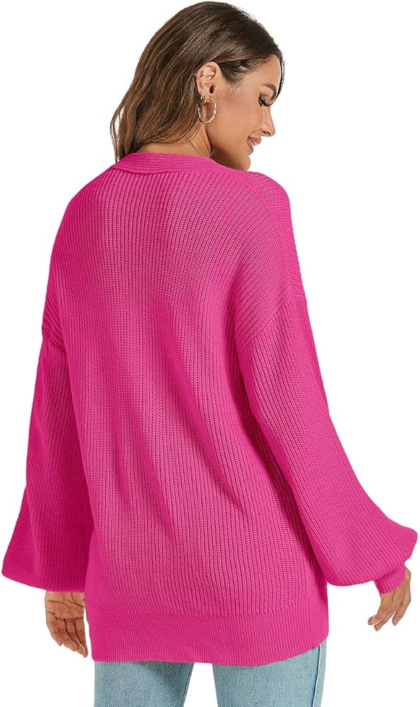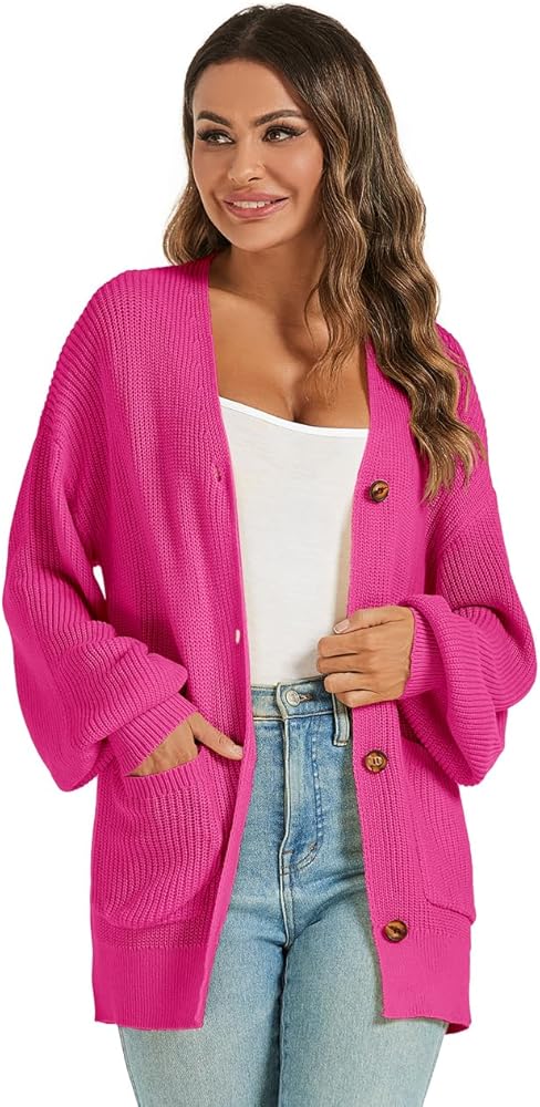 Shermia Womens Long Sleeve Button Down Cardigans Lantern Sleeve Knit Oversized Swearters with Pockets