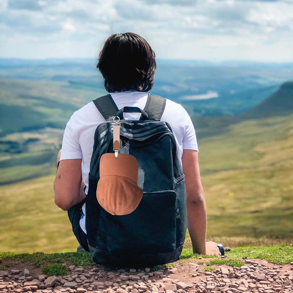[سهل الاستخدام] المشبك المعدني الدائري القابل للدوران 360 درجة سهل الفتح والإغلاق ويمكن تشغيله بيد واحدة. فقط قم بتعليق القبعة على حقيبة الظهر أو حقيبة اليد أو حقيبتك ولن تسقط. عندما تريد خلع القبعة، يمكنك خلعها بسهولة.