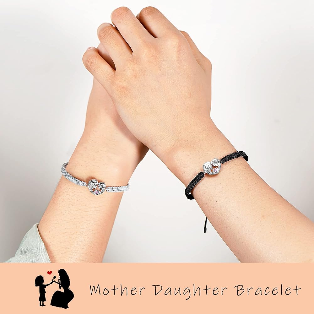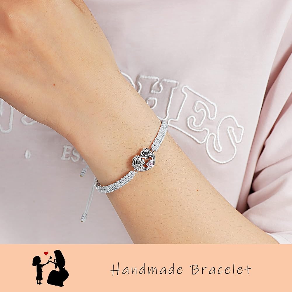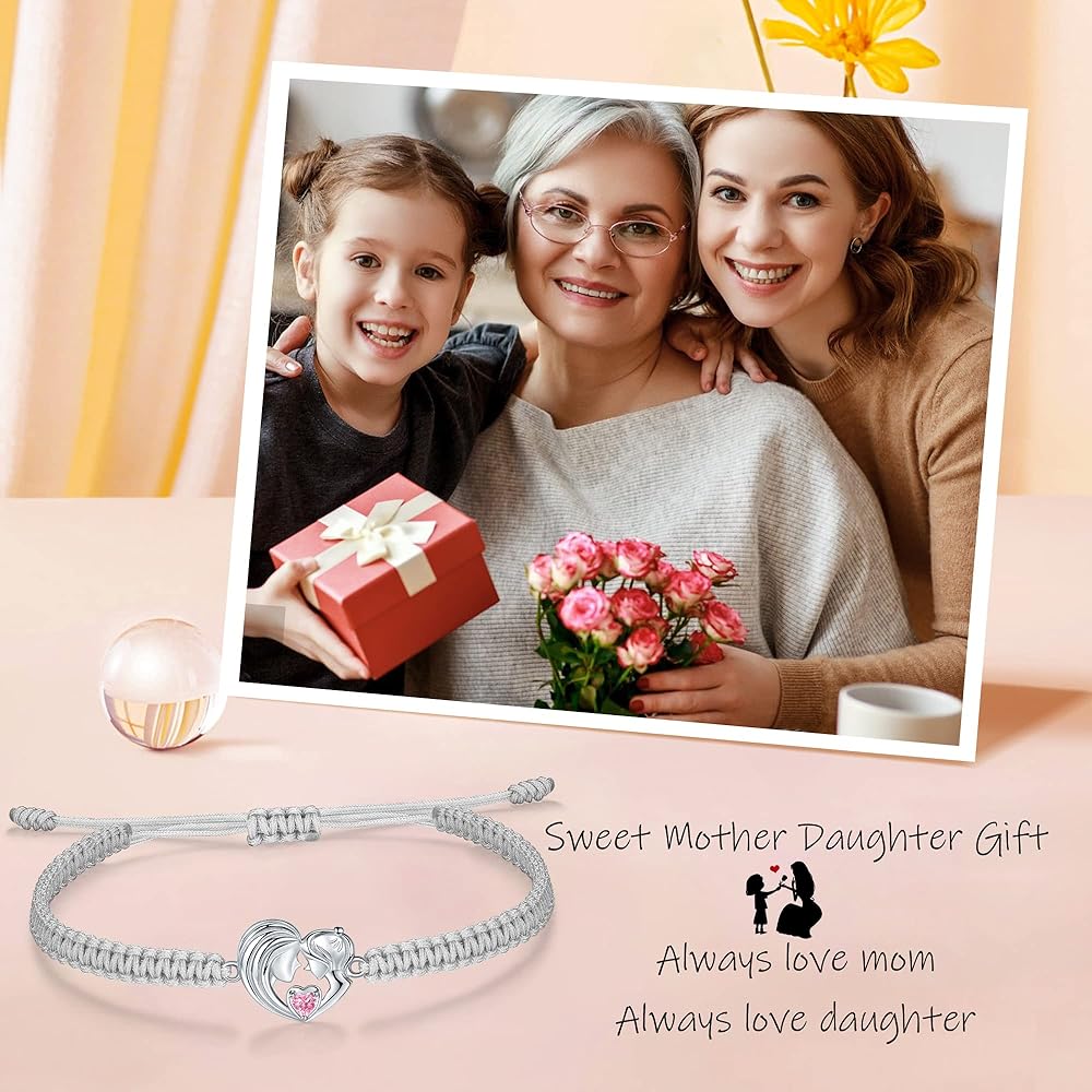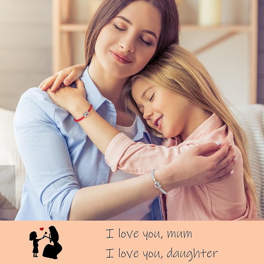• ❤ سوار الأم والابنة: تم تصميم هذا السوار الفضي عيار 925 للأم والابنة. الأم وابنتها تحتضنان بعضهما البعض بقلوب محبة حلوة ودافئة. دائما الأم وابنتها، دائما الأصدقاء. تأتي مع بطاقات تحمل طابع الأم والابنة لتوصيل قلبك بشكل أفضل.