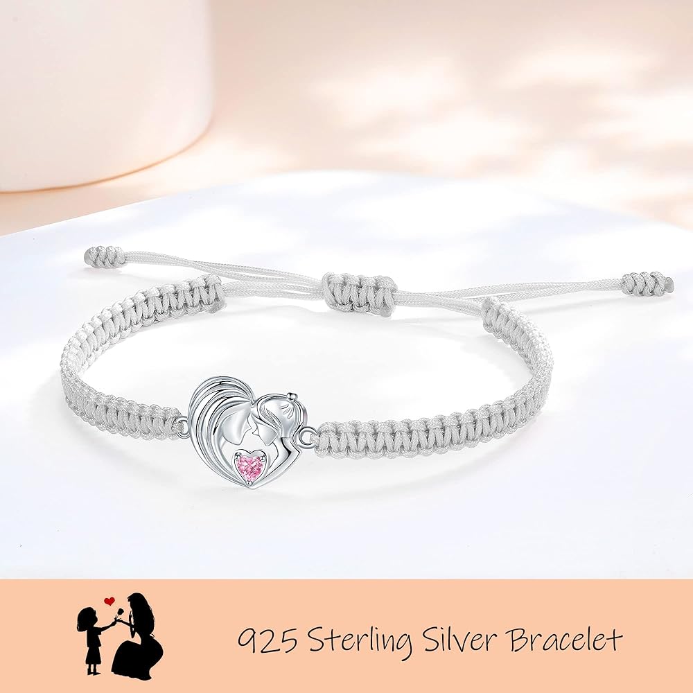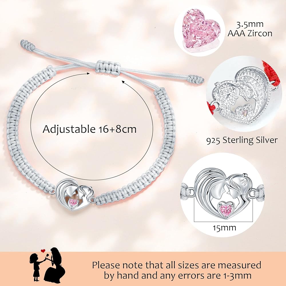 • ❤ المادة: سوار الأم والابنة مع حلية على شكل قلب وخرز مصنوع من الفضة الإسترلينية عيار 925 وفقًا للمعايير الدولية. تم اختباره للتأكد من خلوه من المعادن الثقيلة بموجب لائحة الاتحاد الأوروبي REACH وهو خالي من النيكل والرصاص ومناسب للبشرة الحساسة. أحجار الزركونيا AAAAA لن تسقط بسهولة. سلسلة حبل من النايلون النسيجي المنسوج يدويًا من أجل المتانة والمتانة.