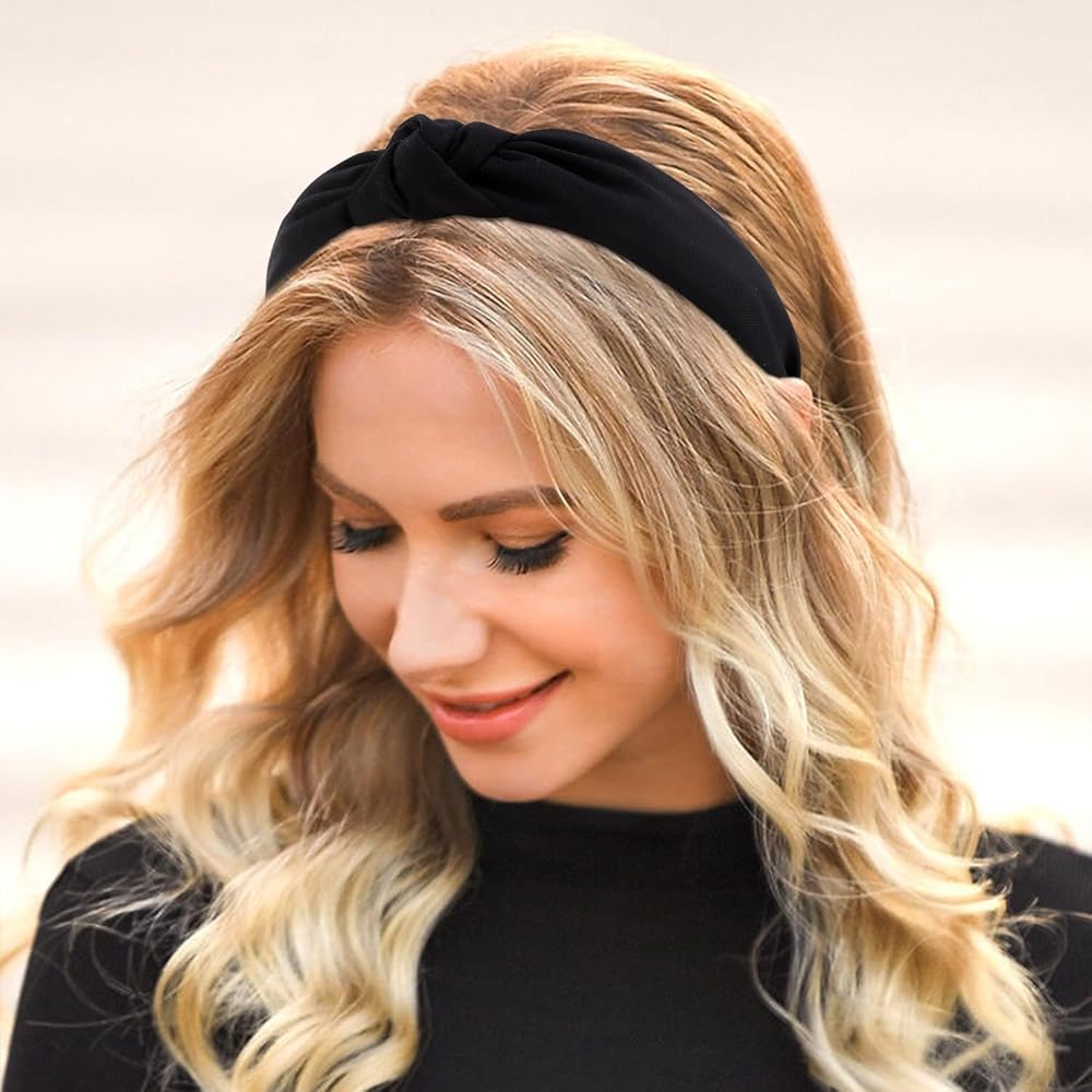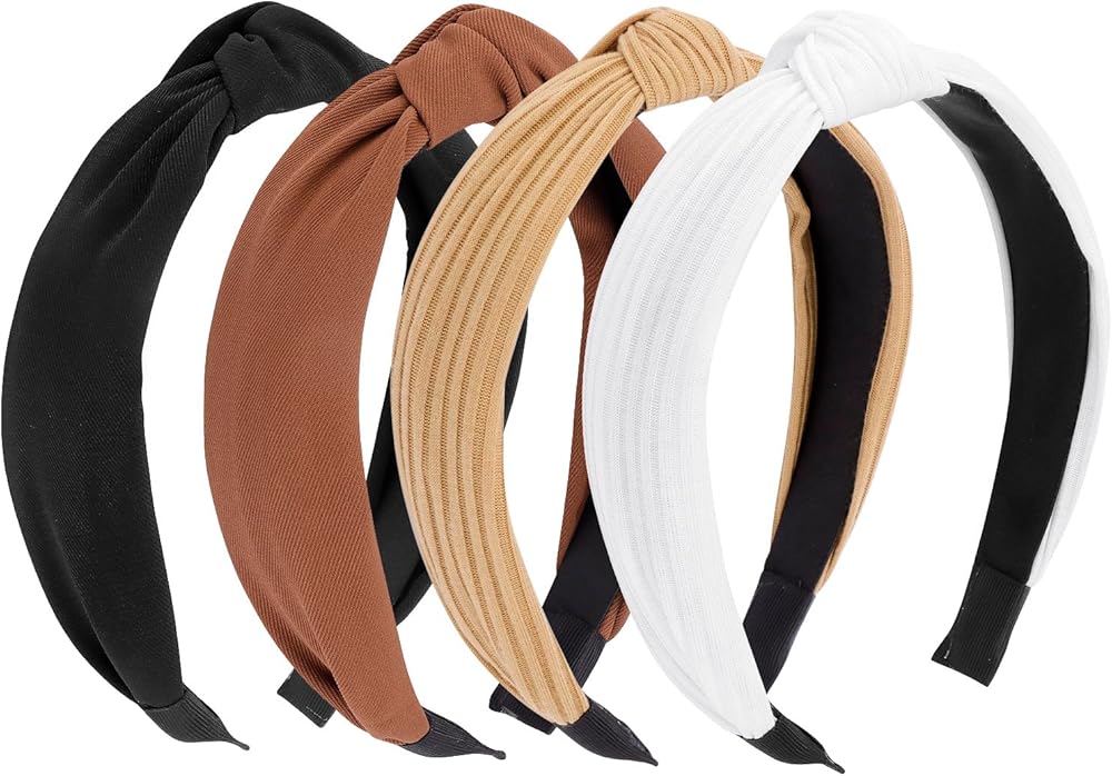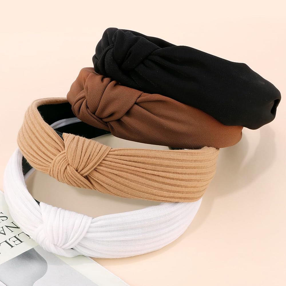 عصابة رأس معقودة للنساء، 4 قطع من عصابات الرأس غير قابلة للانزلاق للنساء، عصابات رأس لشعر المرأة، عصابة رأس عصرية سوداء محايدة، إكسسوارات للشعر للنساء والفتيات
