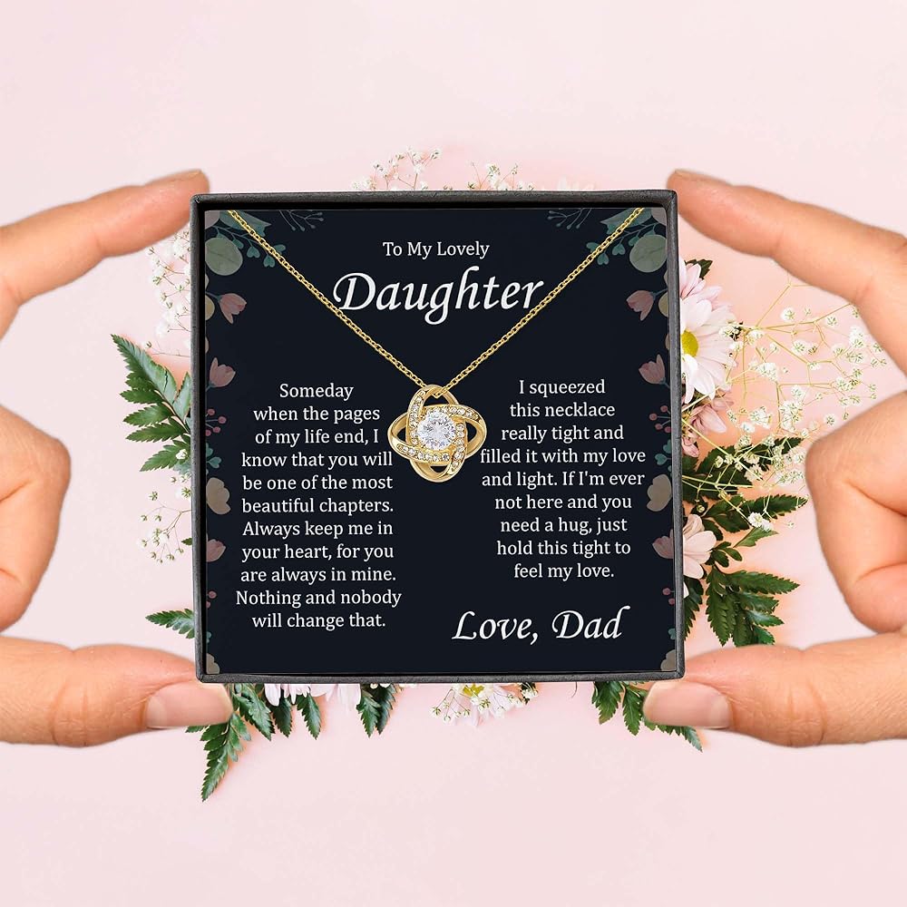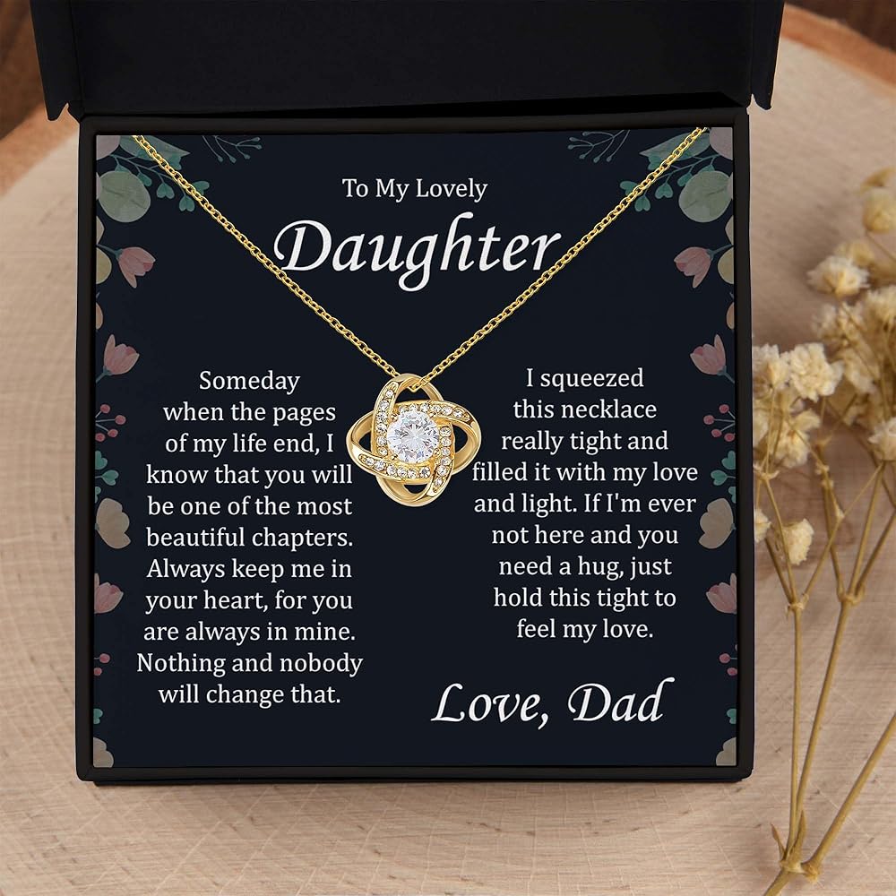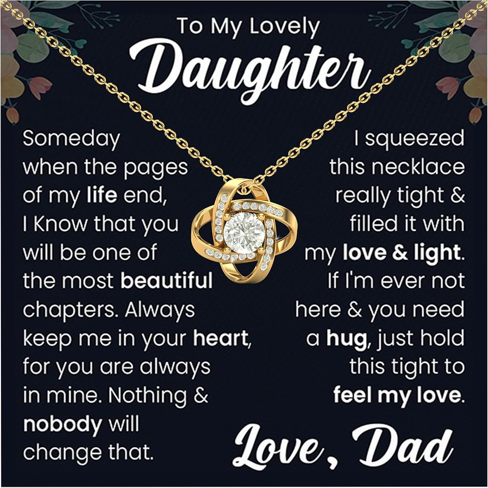 MESSAGE READS ON DESIGN: To my lovely daughter. Someday when the pages of my life end, I know that you will Be one of the most beautiful chapters. Always keep me in your heart, for you are always Mine. Nothing and nobody will change that. I squeezed this necklace really tight and Filled it with my love and light. If I'm ever not here and you need a hug, just hold This tight to feel my love. Love DAD