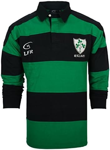 تفاصيل دقيقة - خطوط خضراء ورمادية تخلق نمطًا جريئًا في جميع الاتجاهات، ومزخرف بشعار أيرلندي مطرز وشعار "Live for Rugby".