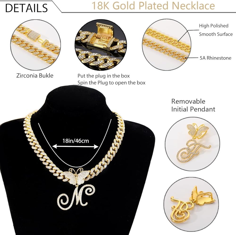• ♥ حجم القلادة ذات السلسلة المثلجة ♥ طول القلادة الماسية هو: 18 بوصة (46 سم)، عرض السلسلة 0.47 بوصة (1.2 سم). يبلغ طول قلادة الحروف المنحنية حوالي 5 سم وسيكون هناك اختلاف قليلاً بسبب شكل 26 حرفًا أوليًا إنجليزيًا مختلفًا. يمكن خلع قلادة الفراشة المتصلة بسهولة من سلاسل الوصلات الكوبية. يمكنك ارتداء سلسلة كوبية واحدة أو مع قلادة حسب ملابسك.