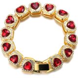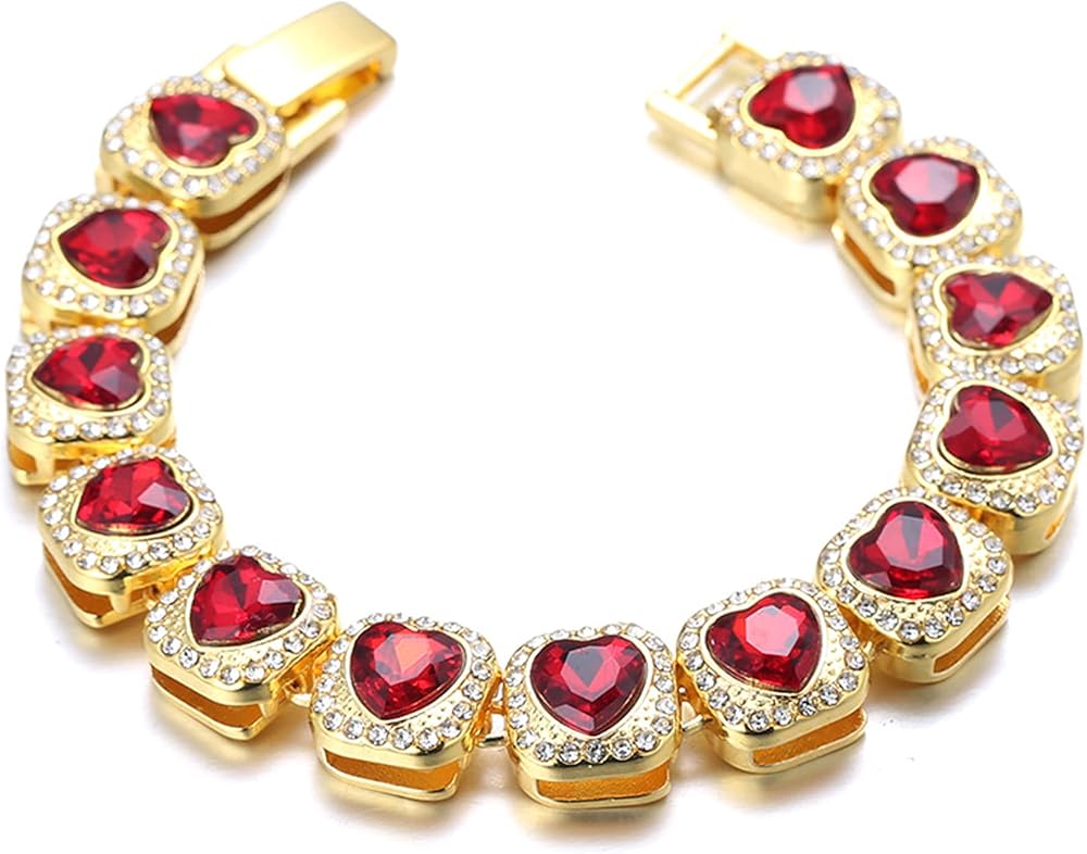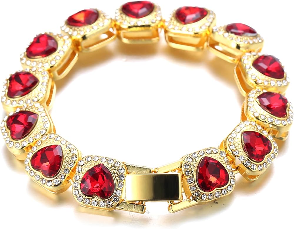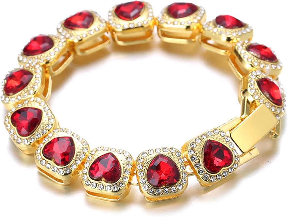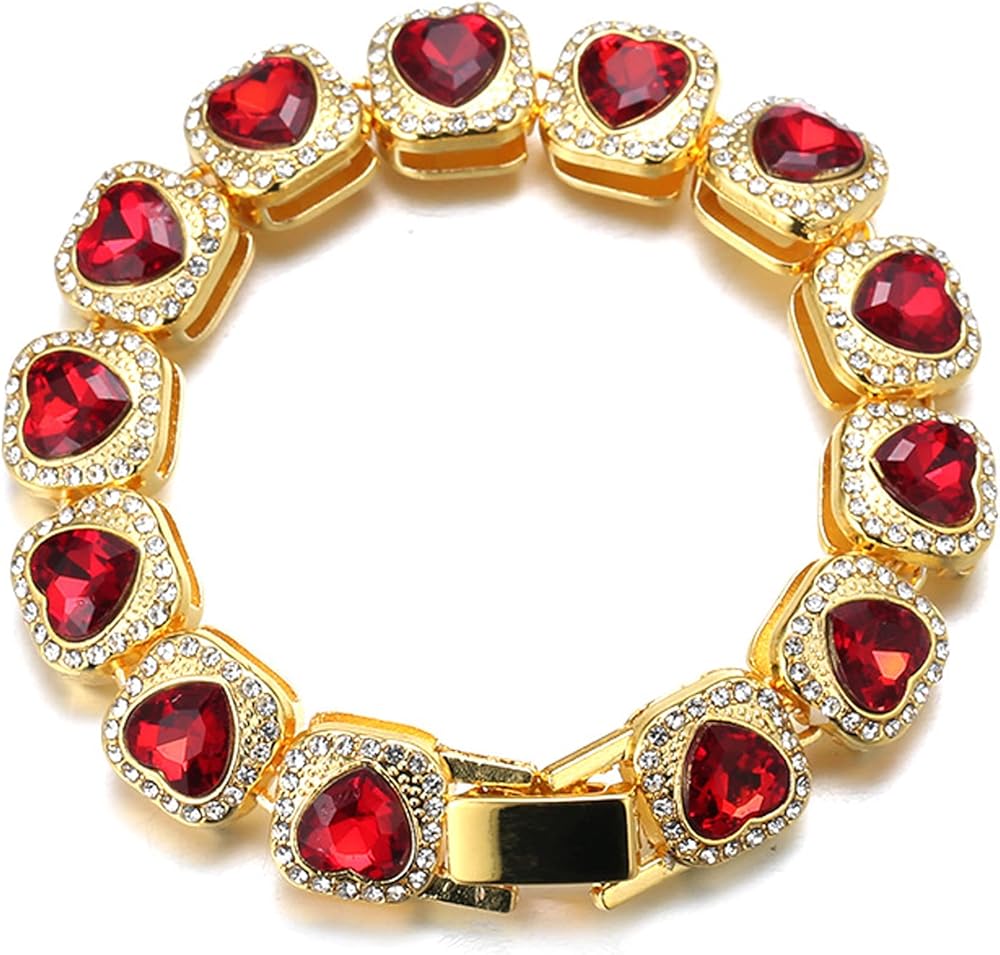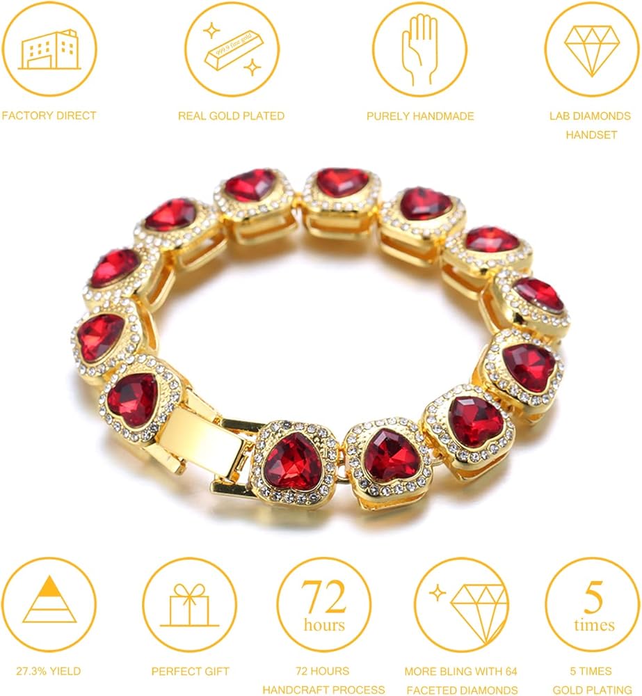 سلسلة ربط كوبية ألماسية من هالوكاكا للرجال، 13 مم 18 قيراط مطلية بالذهب الحقيقي/مطلية بالبلاتين على شكل قلب محب وقلادة ألماس روبي، مجموعة شوكة من ألماس المختبر، مع صندوق هدايا مجاني