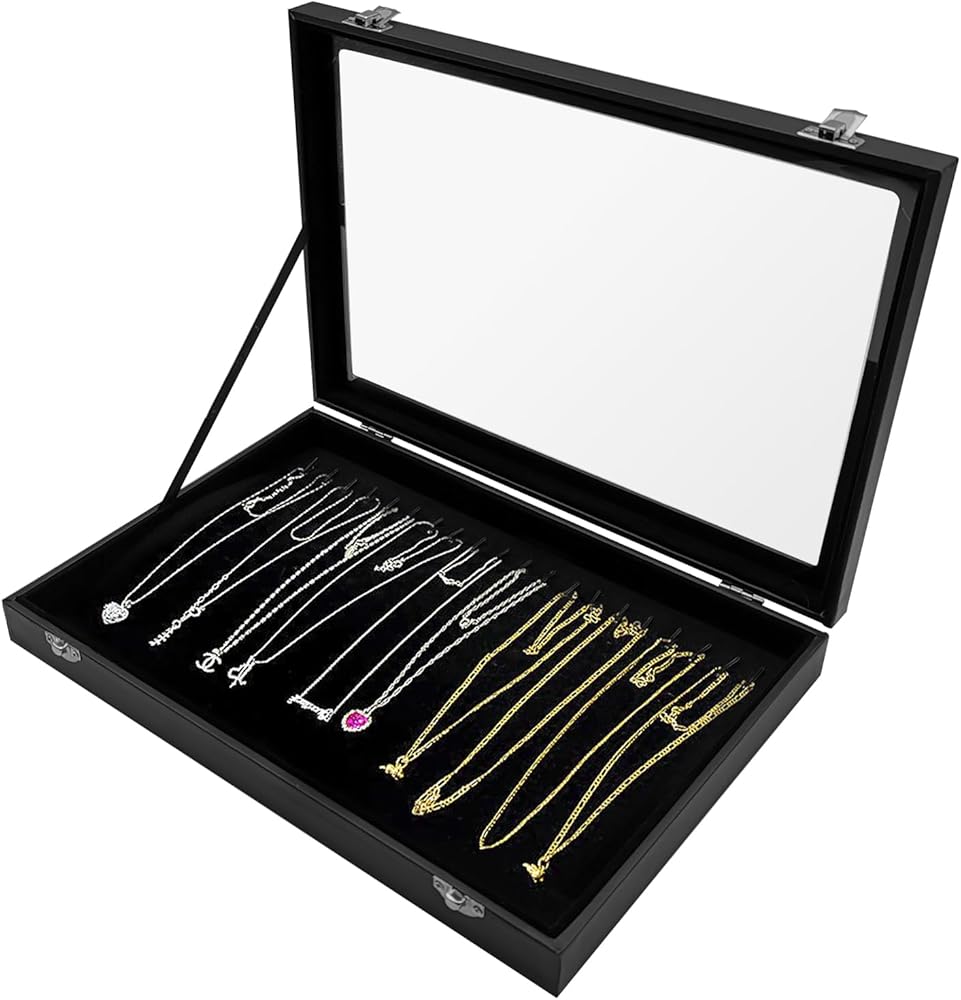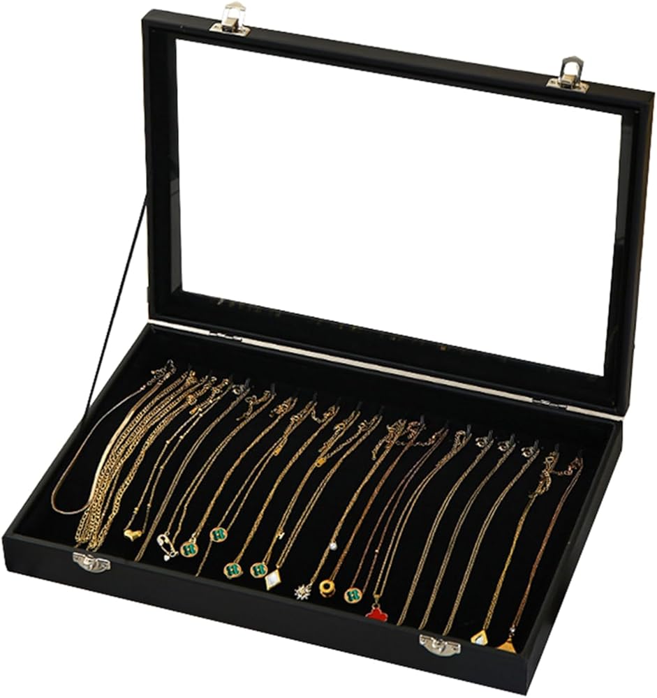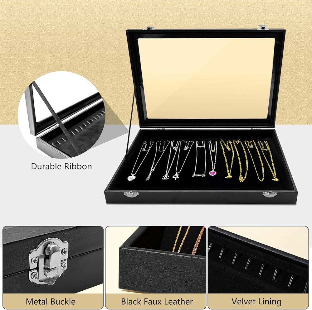 LYFJXX Necklace Organizer Box, Jewelry Tray with Clear Lid Black