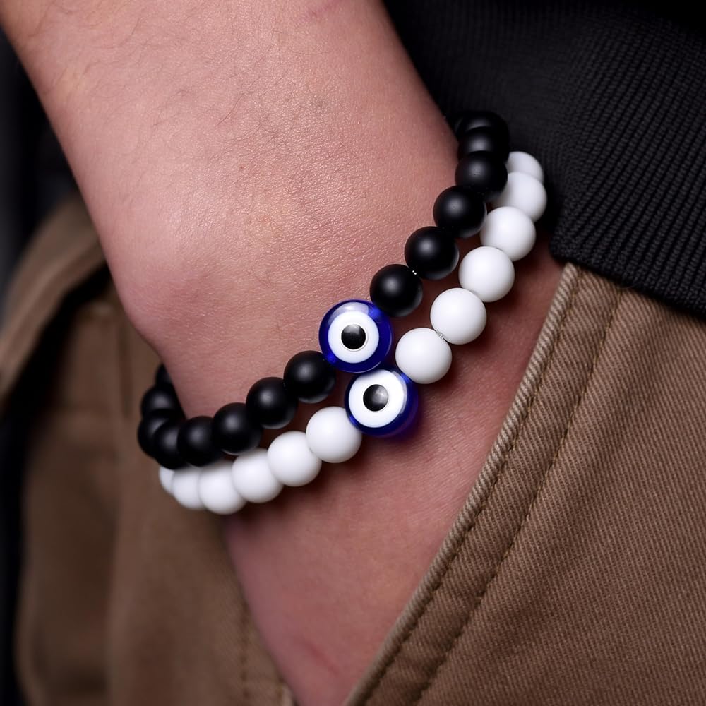 2 pieces as a set. The couples bracelets have classic color and timeless style, it's a perfect bracelets set for both casual and formal occasions. Comes with 2 pcs VICIMA branded velvet jewelry pouches. The evil eye jewelry is a pefect amulet for your best friends and your significant other.