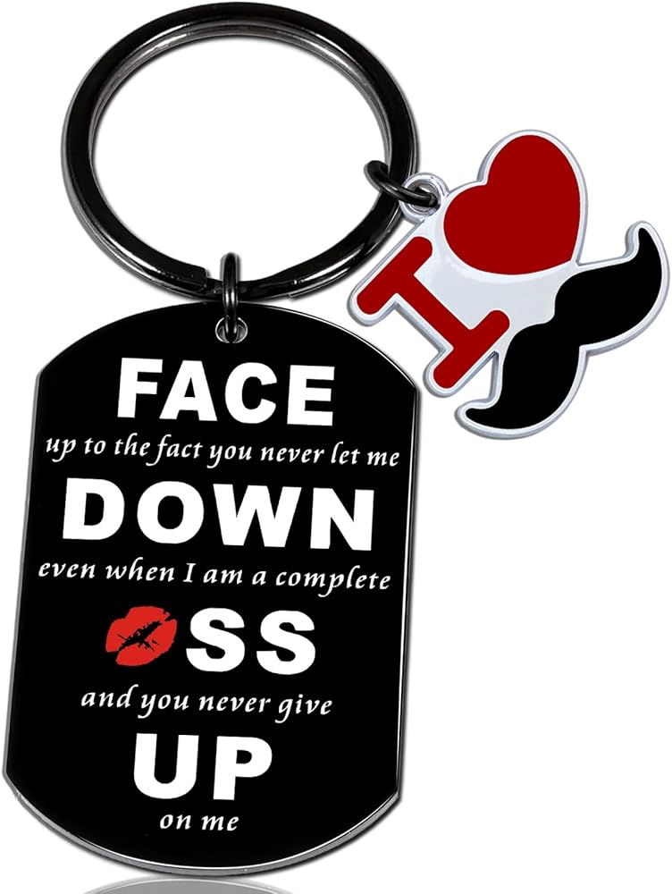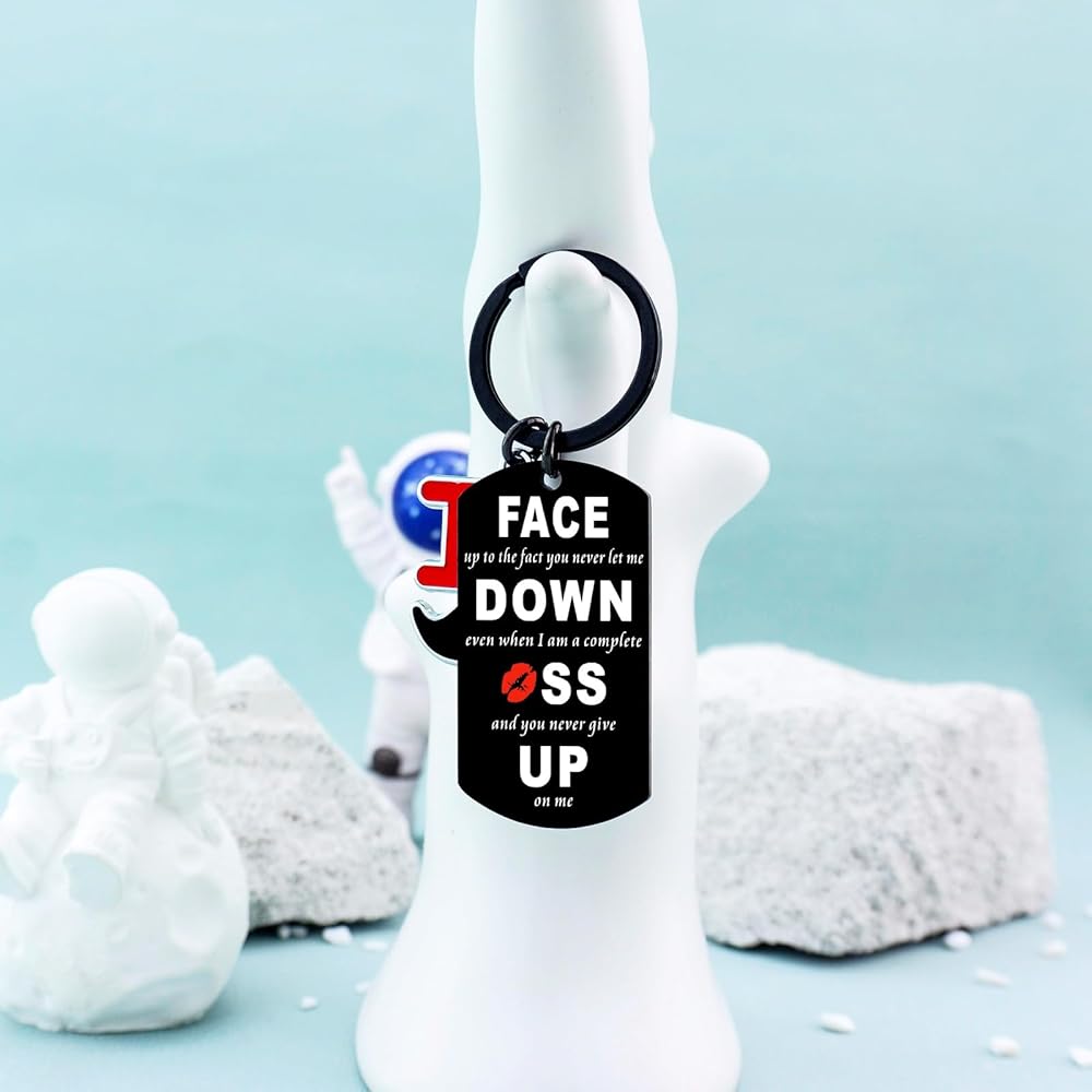 💕Funny Couple Gifts: Fun gift for couples. The keychain is engraved with "face up to the fact you never let me down, even when I am a complete kiss and you never give up on me." It can be expressed to your girlfriend, boyfriend, wife or husband on any holiday Your love!