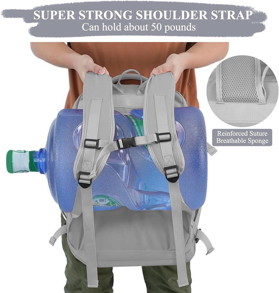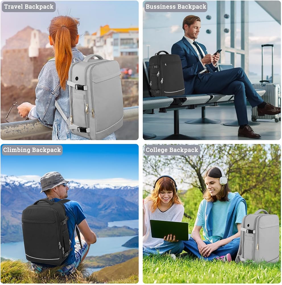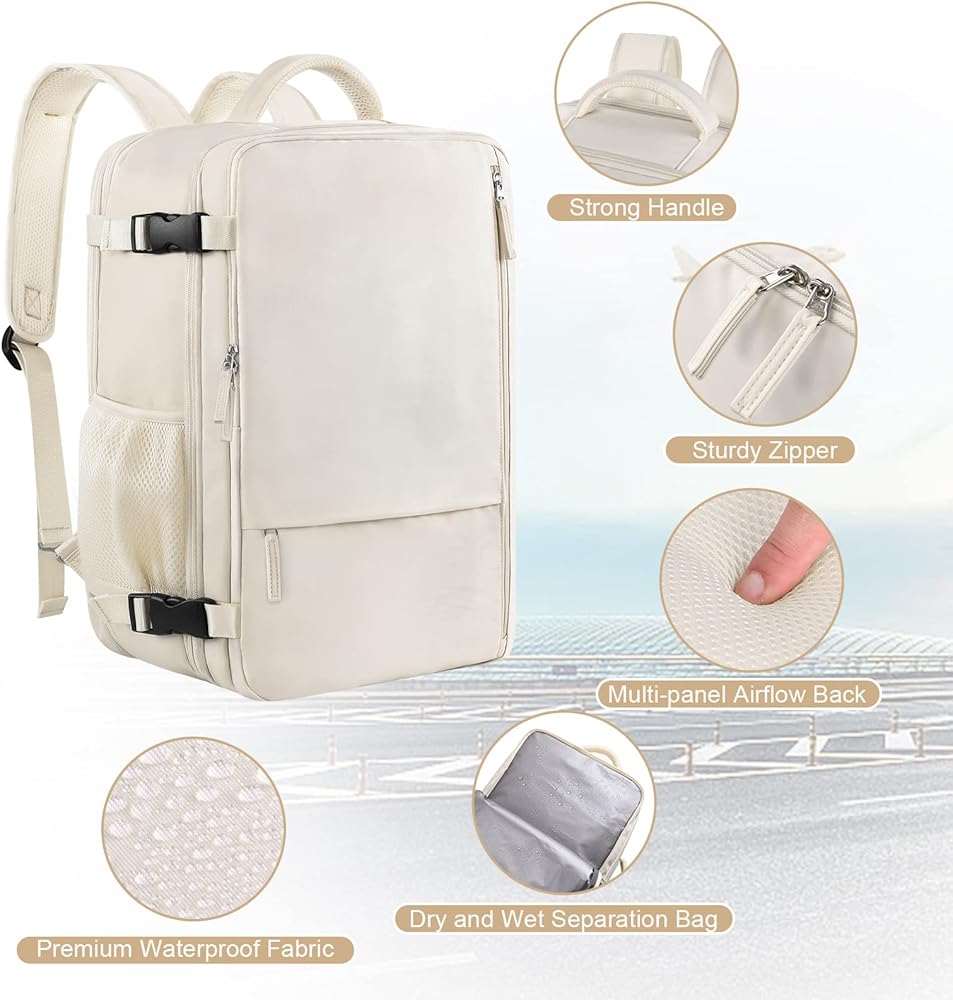 حقيبة ظهر كبيرة للسفر للنساء والرجال (بيج ورمادي)، حقيبة ظهر للحمل سعة 40 لترًا، حقيبة ظهر كاجوال مقاومة للماء للكمبيوتر المحمول مقاس 17 بوصة، حقيبة كتب جامعية، حقيبة ظهر للنساء، كما تمت الموافقة على رحلة الشخص
