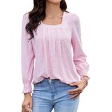 【تصميم فريد】: تميز بأناقة مع رقبة مربعة أنيقة، ومطويات أمامية، وتصميم بأكمام منتفخة لهذه البلوزات الكاجوال الأنيقة.